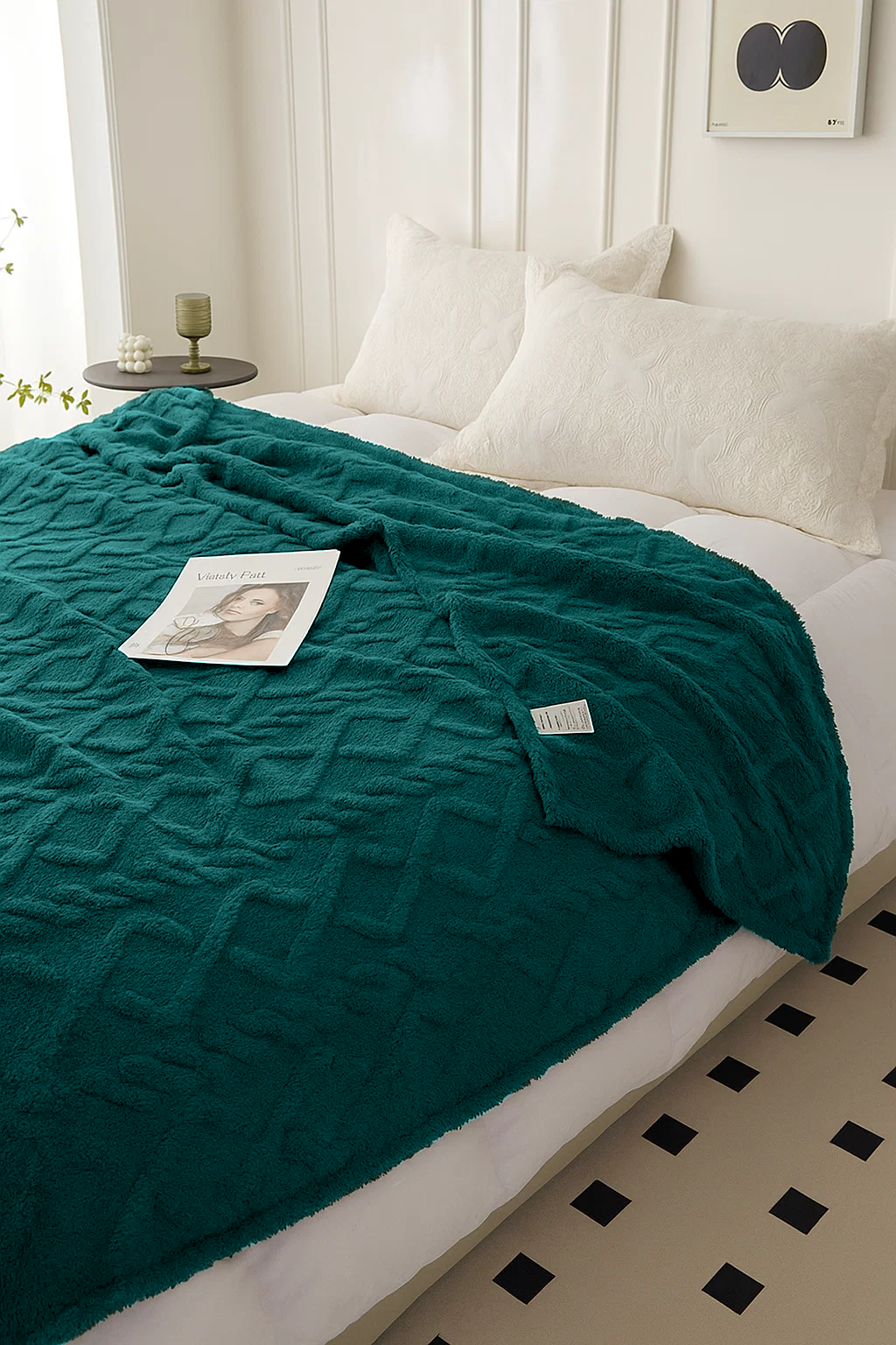 Koc pluszowy tłoczony w sweterek 3D 200x220 niebieski ciemny turkusowy