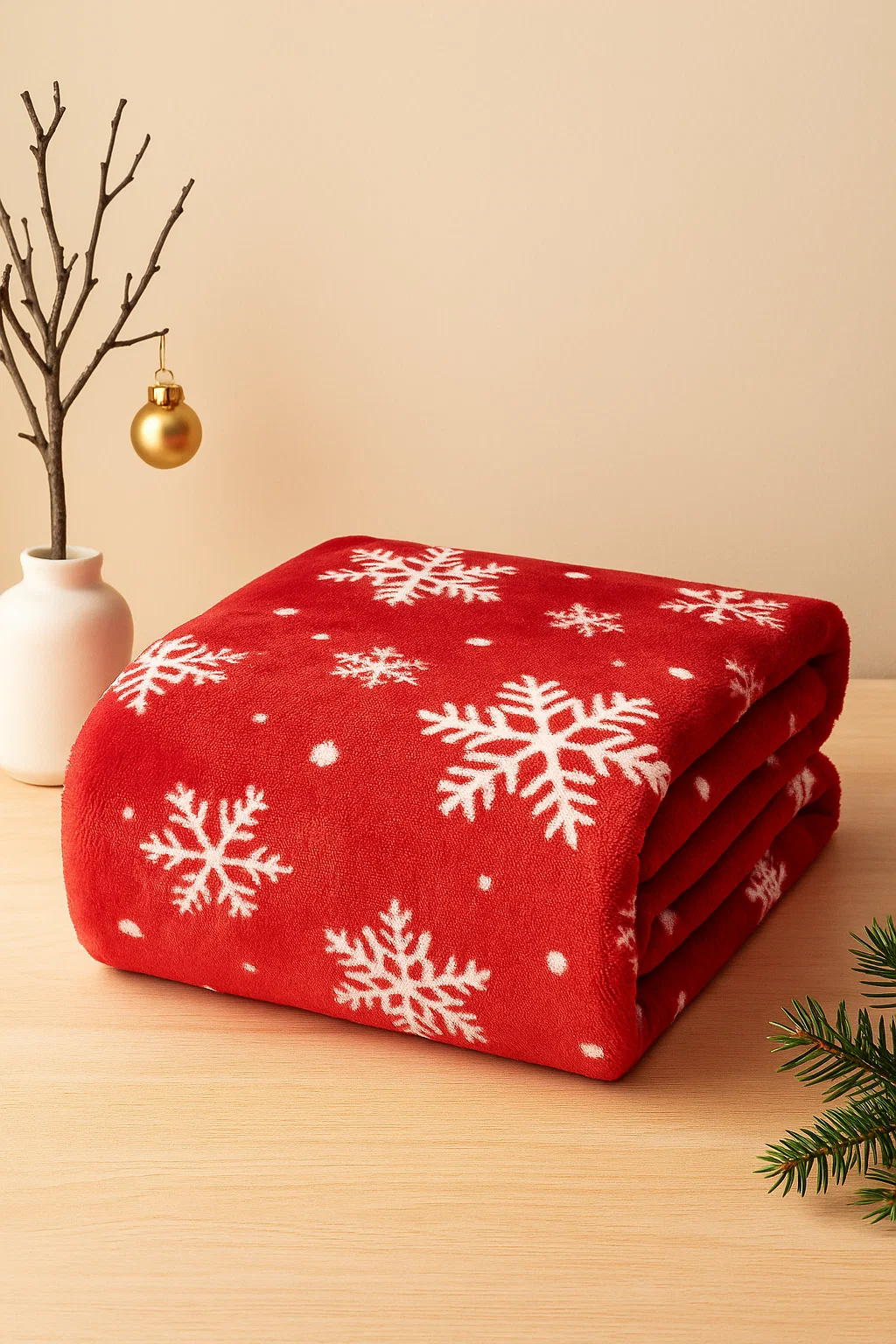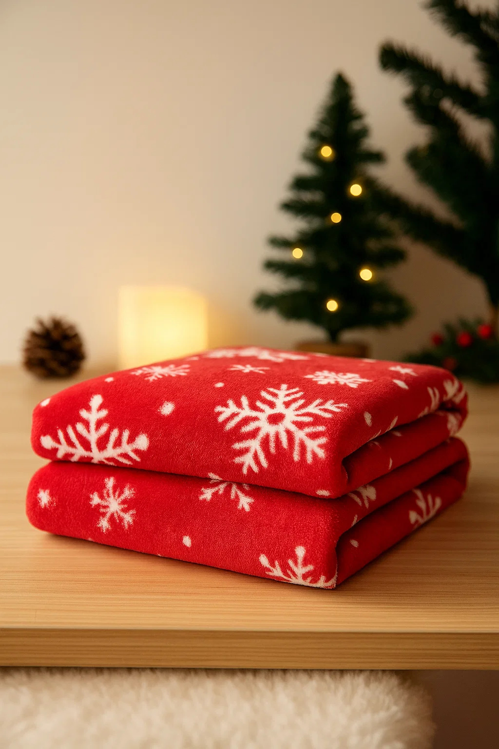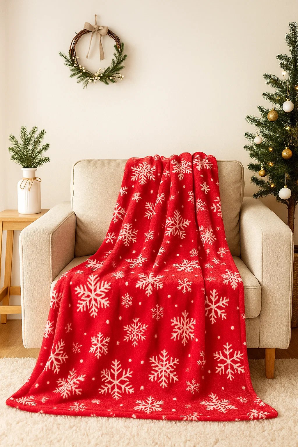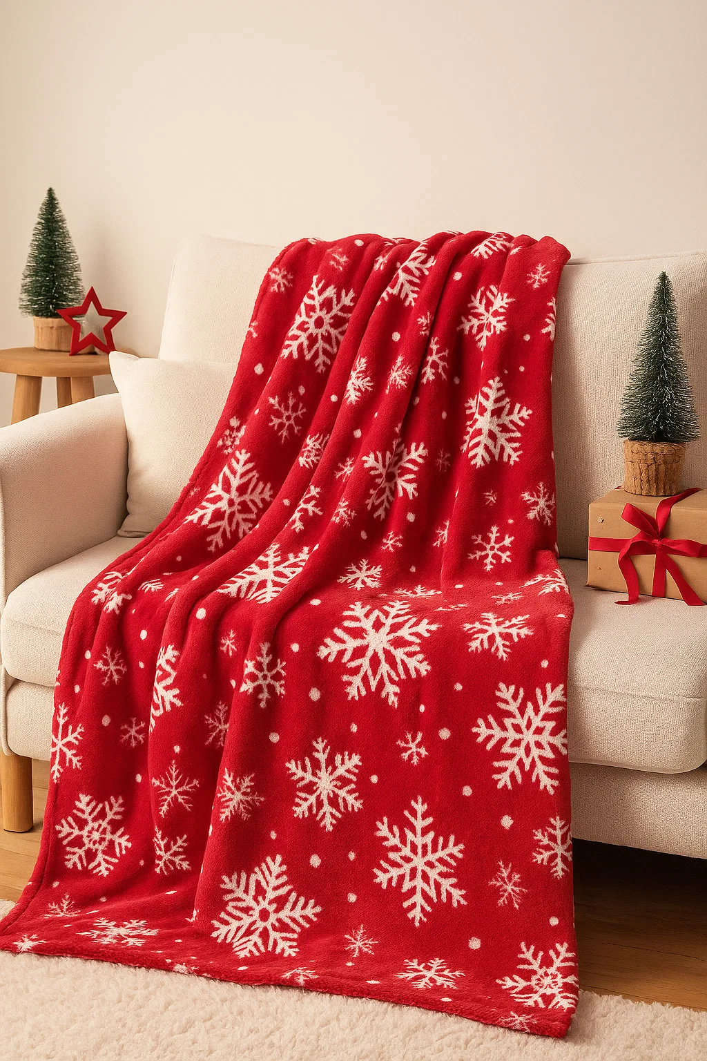 - Mięciutki koc narzuta z mikrofibry, elegancko wykończony i ciepły, idealny na chłodne zimowe wieczory 160x200 świąteczny czerwony we wzór śnieżynek