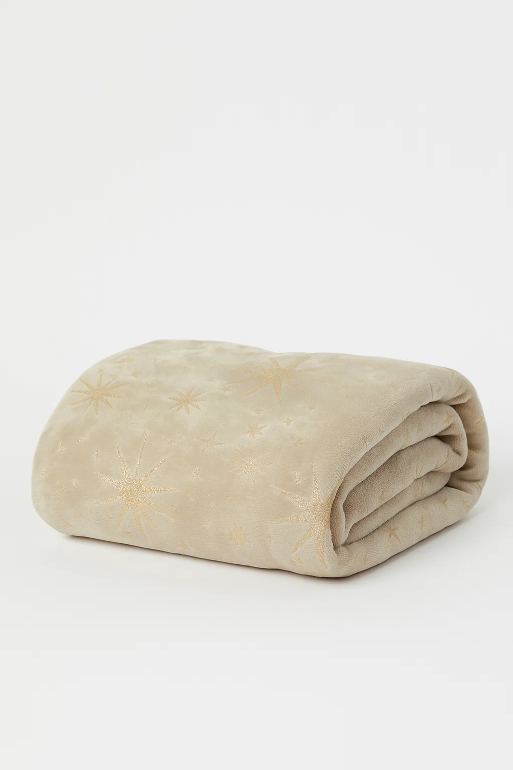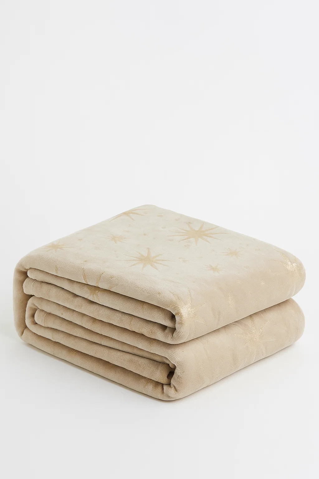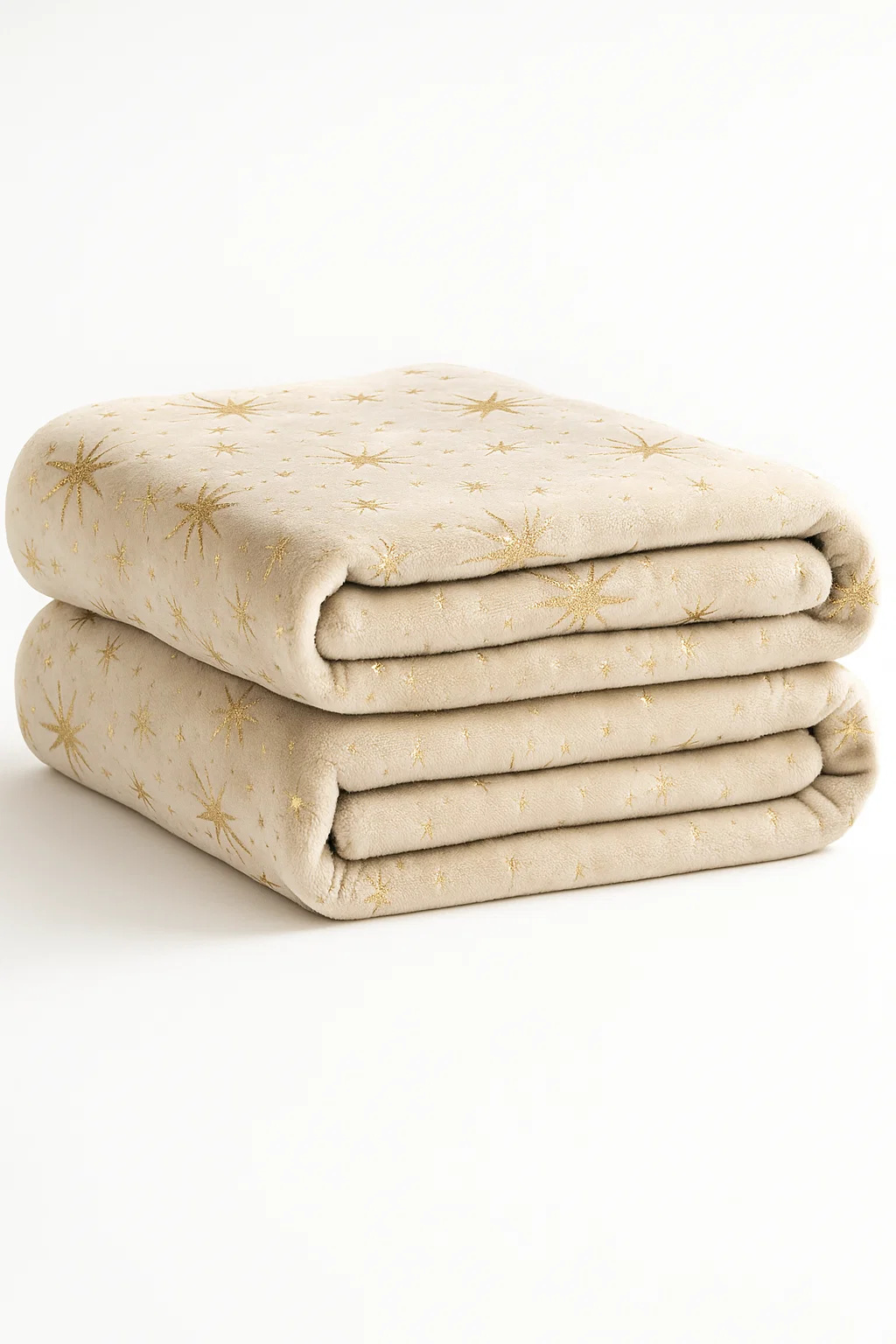 Koc świąteczny pluszowy w złote gwiazdki 160x200 beżowy