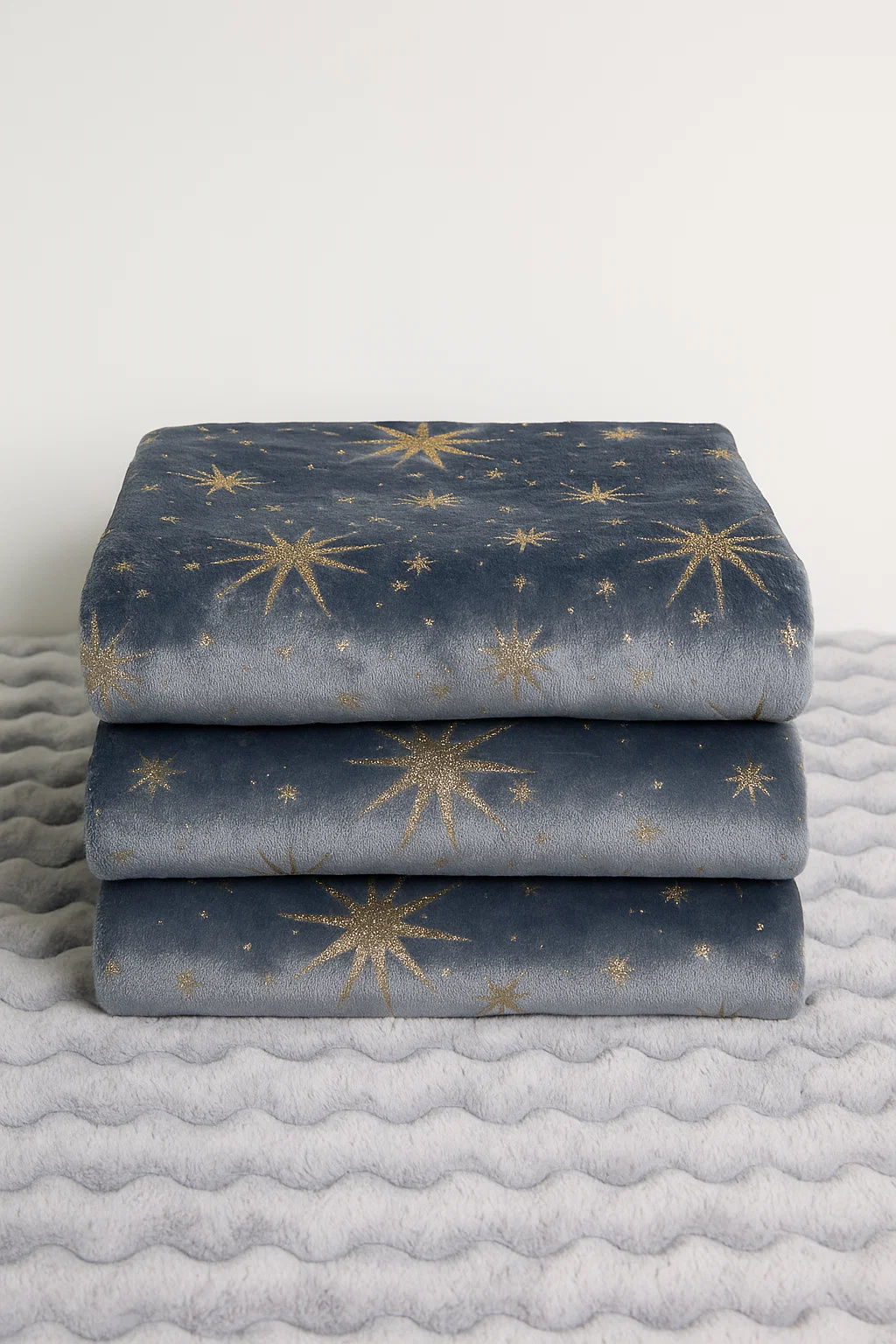 • Mięciutki koc narzuta z mikrofibry, elegancko wykończony i ciepły, idealny na chłodne zimowe wieczory 160x200 świąteczny ciemny szary we wzór gwiazdek
