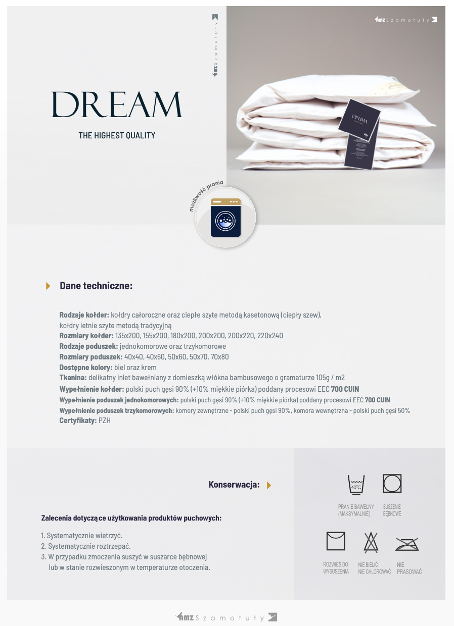 Kołdra 180x200 zimowa bambusowa puchowa naturalna antyalergiczna DREAM
