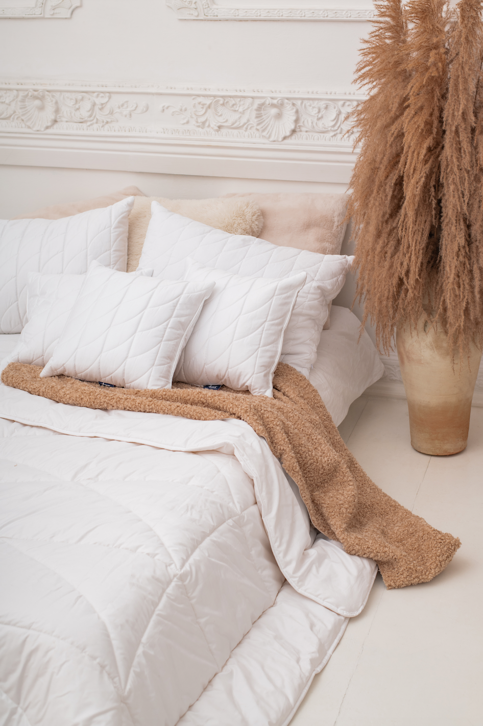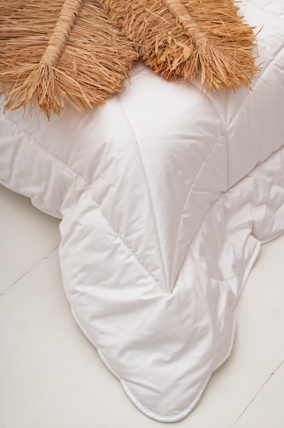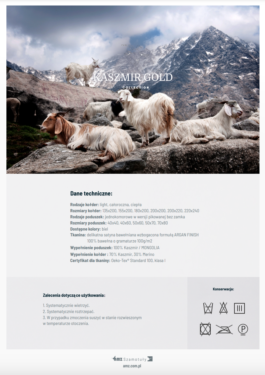- Kołdra wypełniona wełną kozy kaszmirskiej i wełną alpejskich merynosów gwarantuje optymalne warunki oraz wyjątkowy komfort snu. Pokryta jest najwyższej jakości satynową bawełnianą wzbogaconą formułą ARGAN FINISH. W kolorze białym.