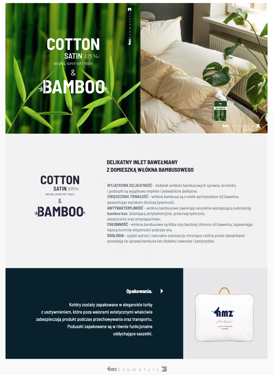 • Tkanina pokryciowa: delikatny inlet 105g/m2 - satyna bawełniana + włókno bambusowe