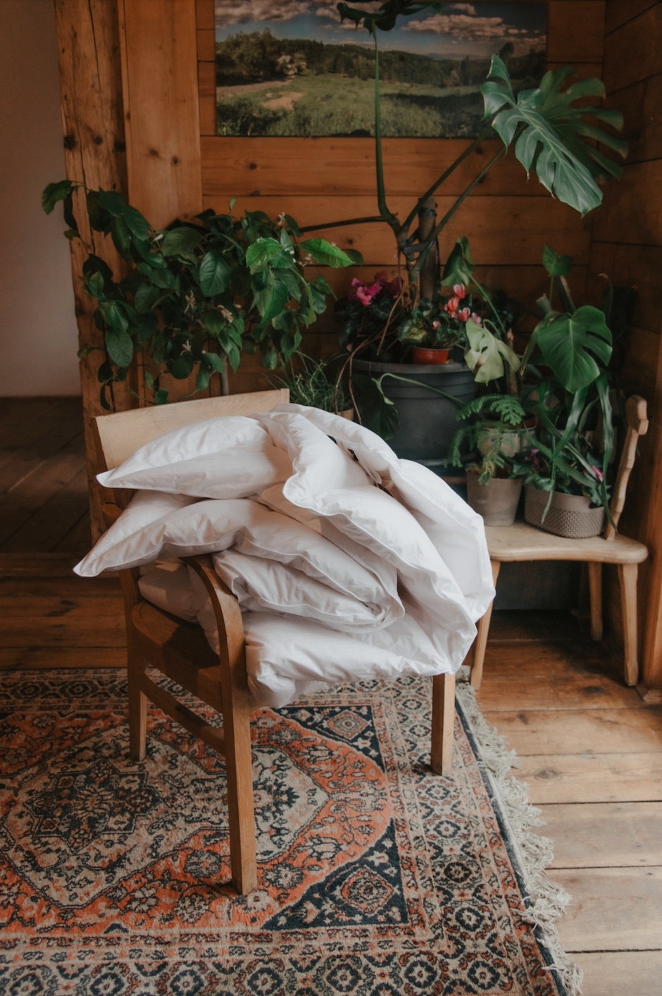 • Ekskluzywne puchowe kołdry i poduszki pokryte termoaktywną tkaniną bawełnianą z domieszką OUTLAST.
