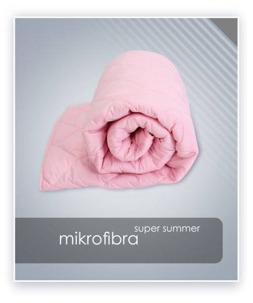 Super lekka kołdra letnia wypełniona materiałem DreamFill z drobnych spiralnie skręconych włókien poliestrowych pokrytych silikonem, dzięki czemu są bardziej puszyste oraz dłużej zachowują swój pierwotny kształt. Włókno posiada bardzo dobry współczynnik termoizolacji, zapewniając ciepło przy zachowaniu niskiej wagi wyrobu. Optymalna cyrkulacja powietrza pozwala ciału oddychać i optymalizować temperaturę podczas snu. Zastosowany materiał pokryciowy ma wyjątkowe właściwości – jego włókno jest wielokrotnie cieńsze od jedwabiu, dzięki czemu tkanina jest bardzo gładka, delikatna i trwała. Mikrofibra to tkanina oddychająca, doskonale filtruje powietrze i nie pozwala na przegrzanie organizmu. Wierzch materiału pokrywa przyjemny w dotyku delikatny meszek, utrzymujący wyroby we właściwym miejscu w poszewce.