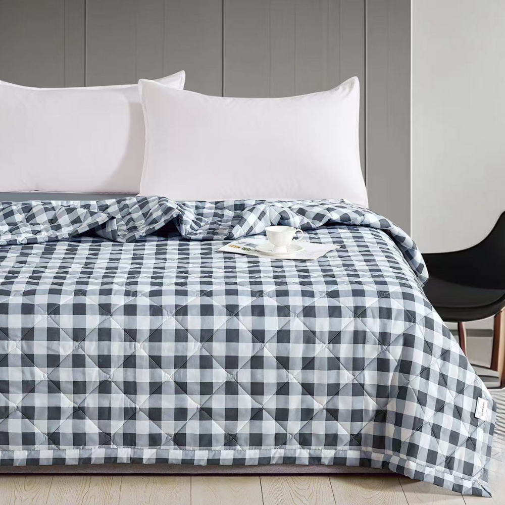 Kołdra letnia pikowana narzuta w kratę ciemna szara 200x220