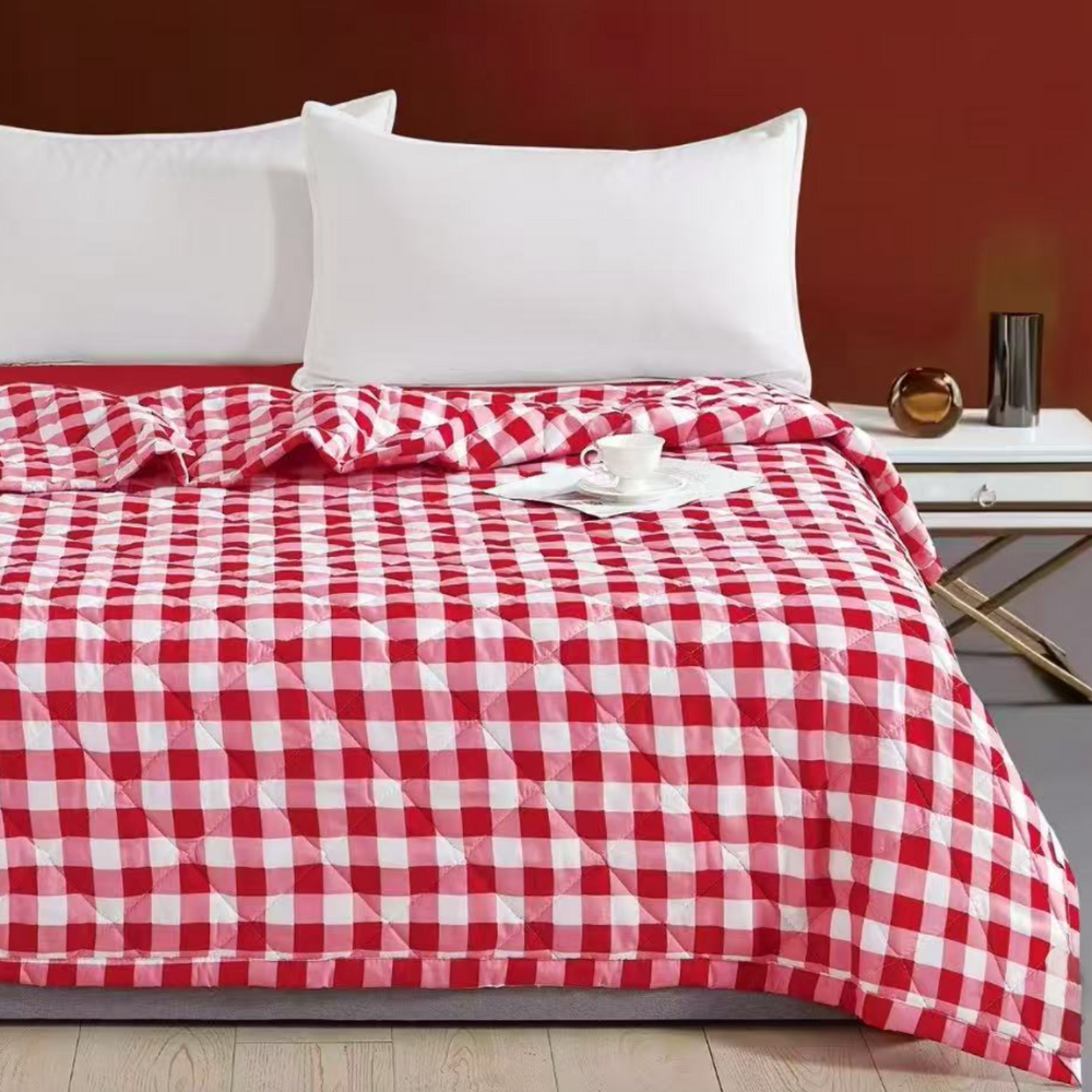 Kołdra letnia pikowana narzuta w kratę czerwona 200x220