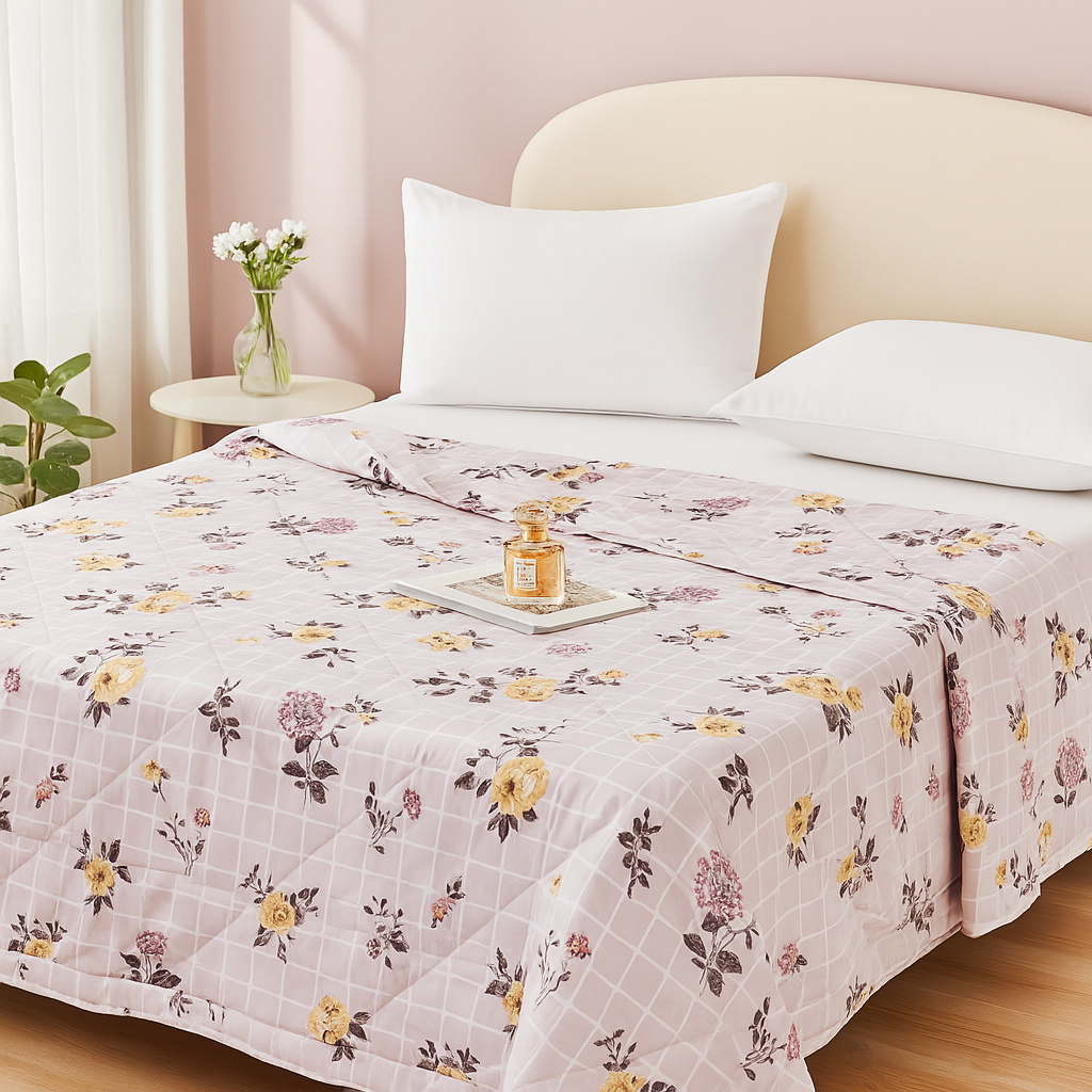 Kołdra letnia pikowana narzuta w kwiaty różowo-biała 200x220 KH014