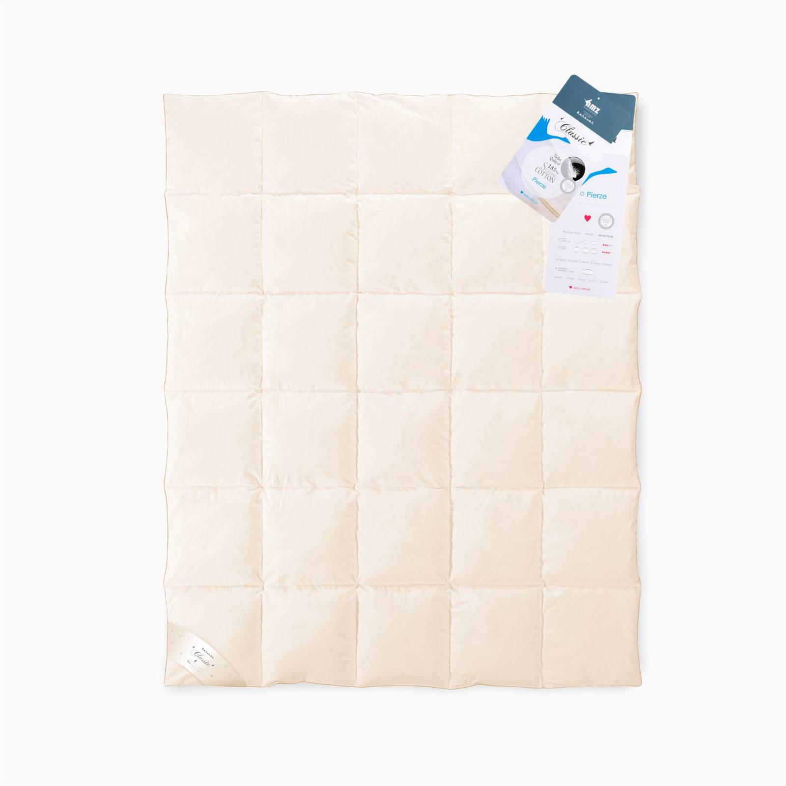 - Zimowa kołdra z polskiego pierza gęsiego. Produkowana metodami tradycyjnymi. Pokryta mocnym i naturalnym inletem bawełnianym.