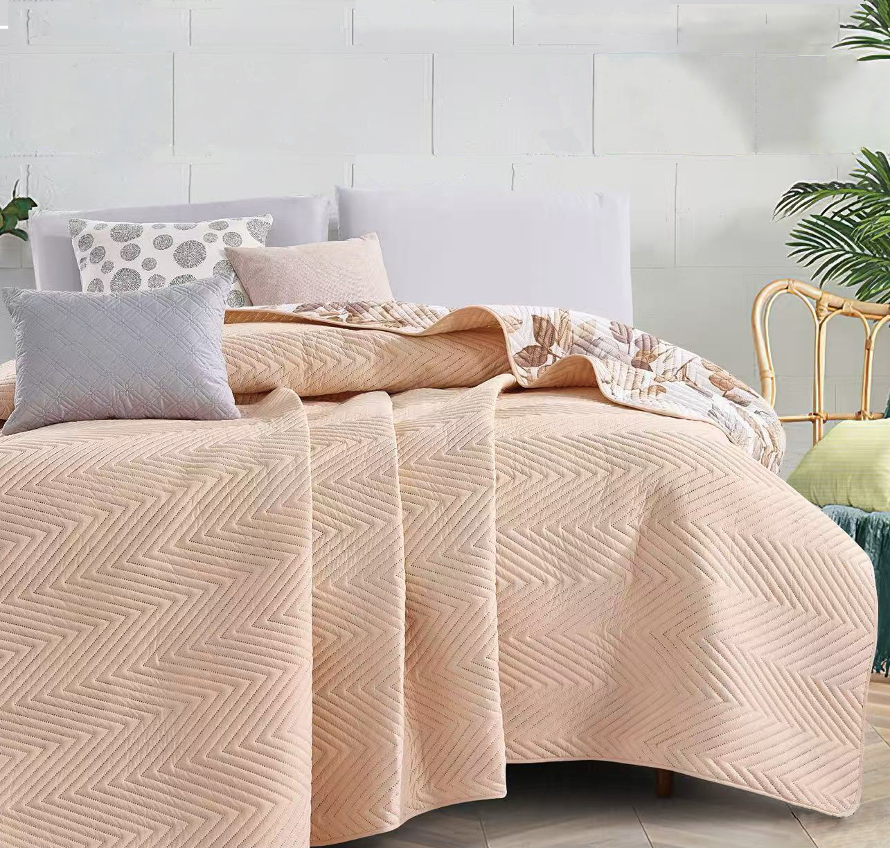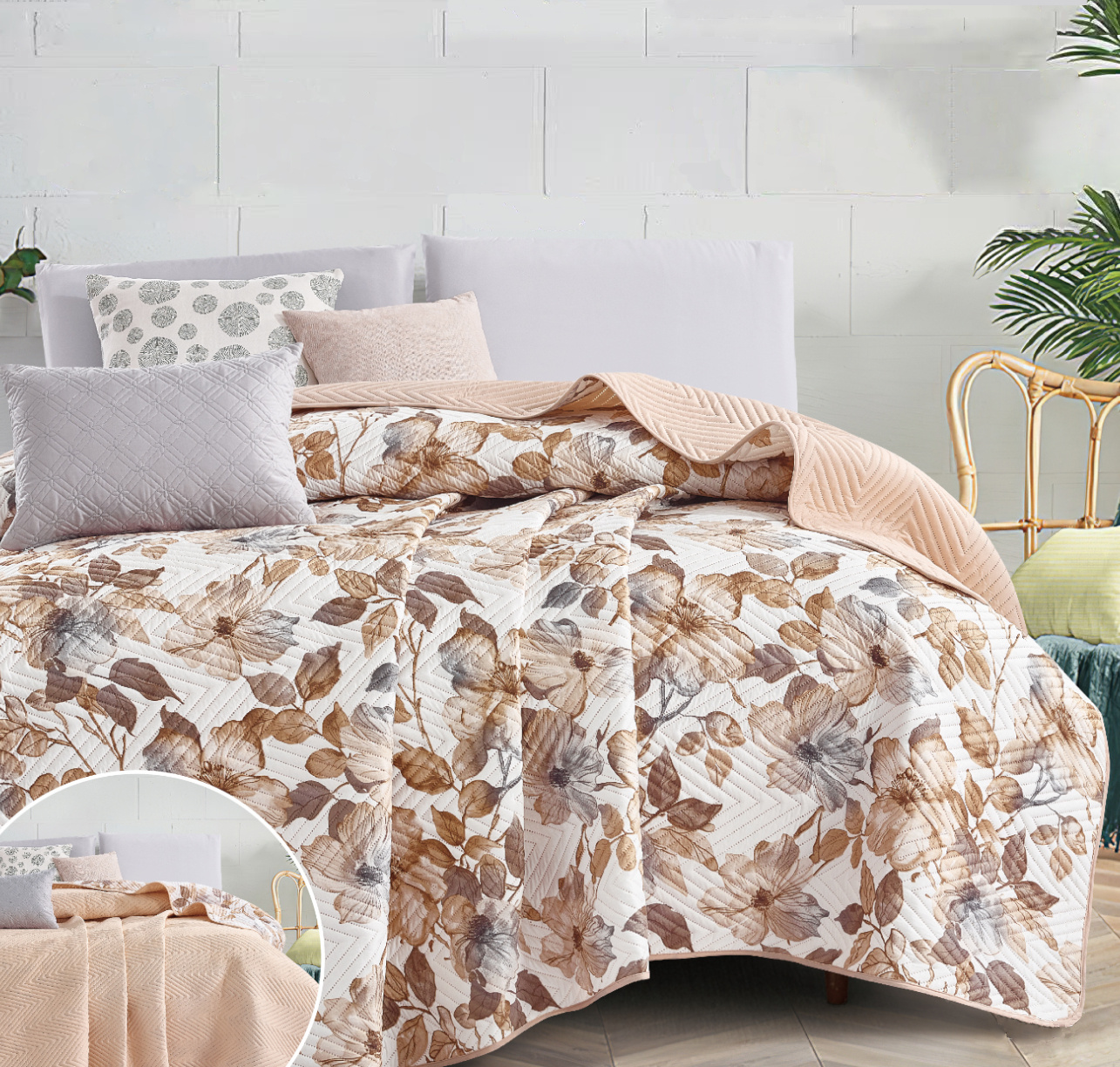 - Pikowana narzuta na duże łóżko z wypełnieniem, ozdobny wzór roślinny, dwustronna, dwukolorowa