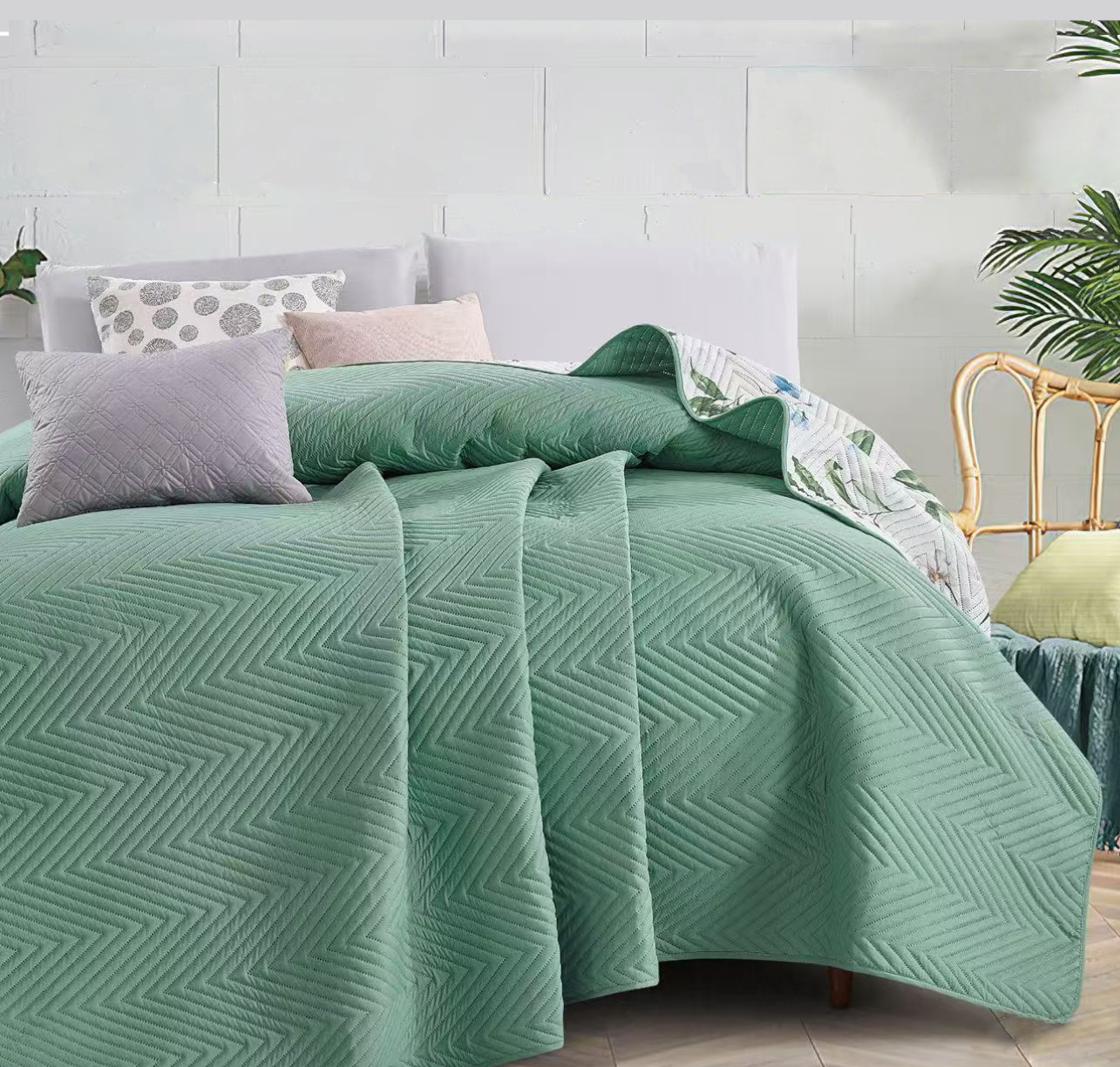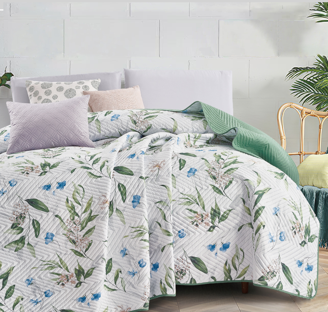 - Pikowana narzuta na duże łóżko z wypełnieniem, ozdobny wzór roślinny, dwustronna, dwukolorowa