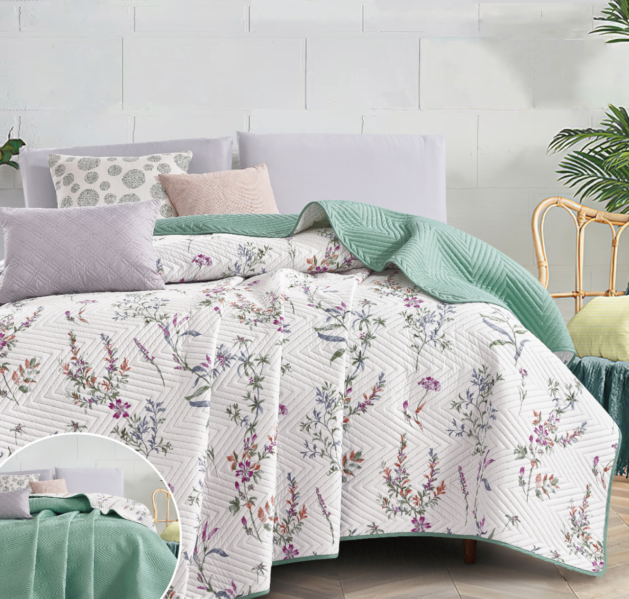- Pikowana narzuta na duże łóżko z wypełnieniem, ozdobny wzór roślinny, dwustronna, dwukolorowa