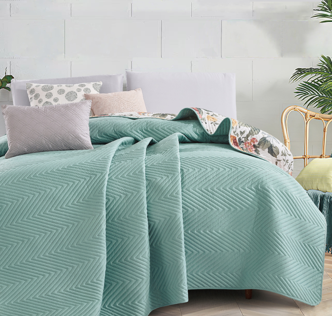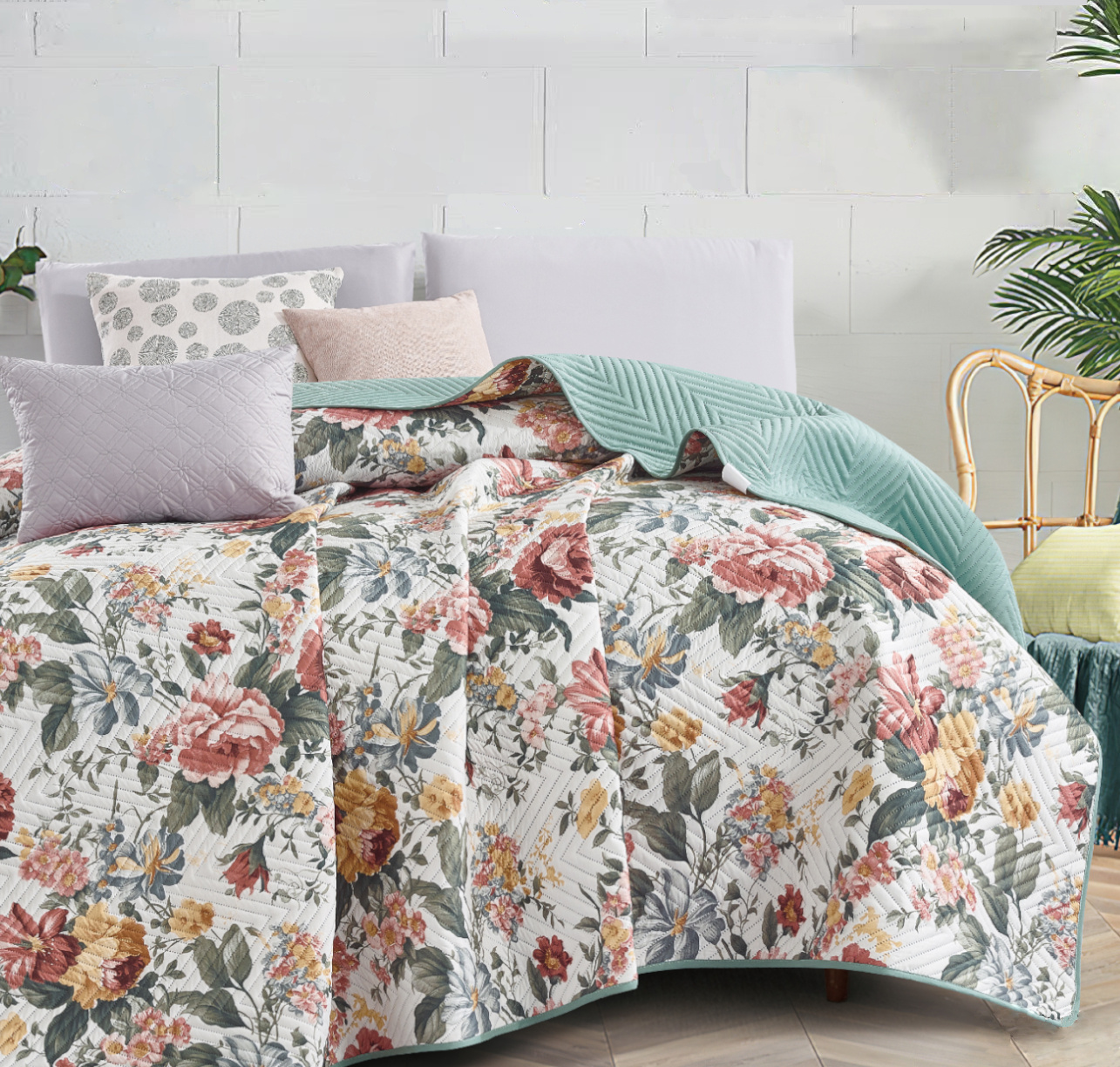 - Pikowana narzuta na duże łóżko z wypełnieniem, ozdobny wzór roślinny, dwustronna, dwukolorowa