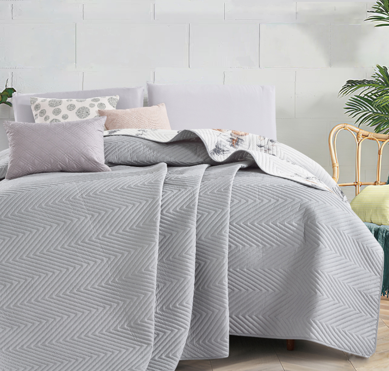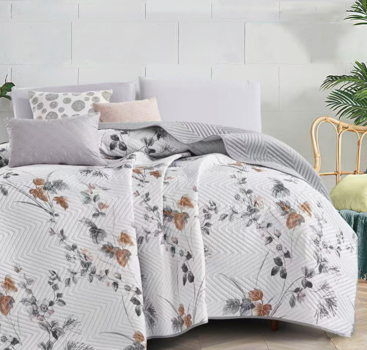 - Pikowana narzuta na duże łóżko z wypełnieniem, ozdobny wzór roślinny, dwustronna, dwukolorowa