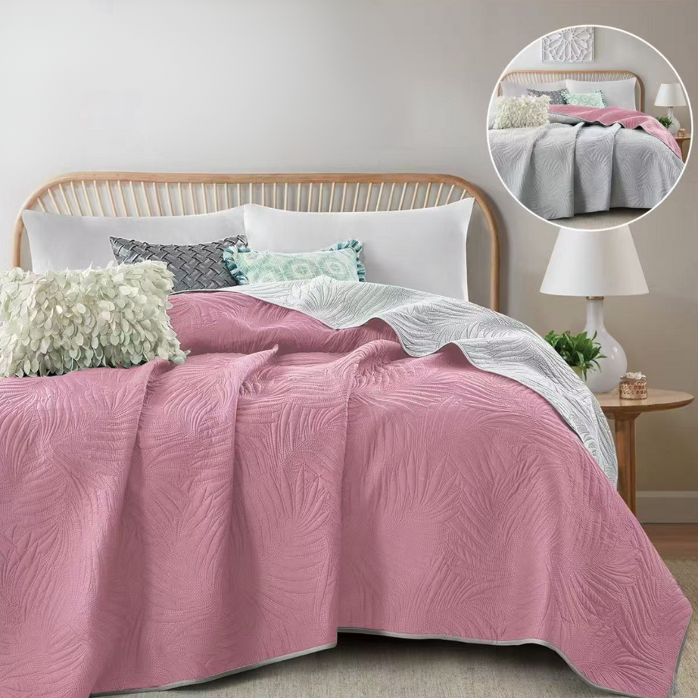 - Pikowana narzuta na duże łóżko z wypełnieniem, ozdobny wzór roślinny, dwustronna, dwukolorowa