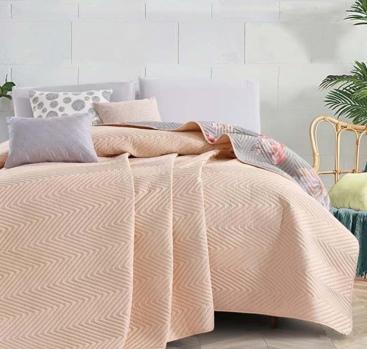 - Pikowana narzuta na duże łóżko z wypełnieniem, ozdobny wzór roślinny, dwustronna, dwukolorowa