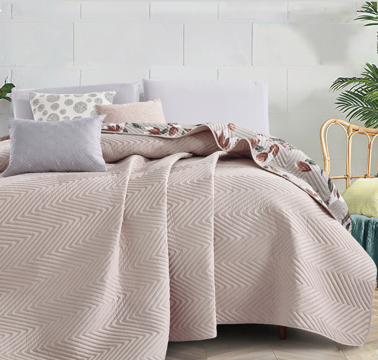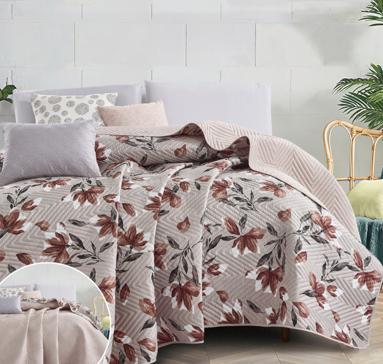 - Pikowana narzuta na duże łóżko z wypełnieniem, ozdobny wzór roślinny, dwustronna, dwukolorowa