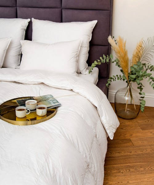 - Bardzo puszysta o średniej wysokości poduszka. Wypełniona w 100% najwyższej jakości polskim puchem gęsim. Nieziemsko lekka i delikatna. Pokryta mako-bawełną, niebywale miękka i otulająca.