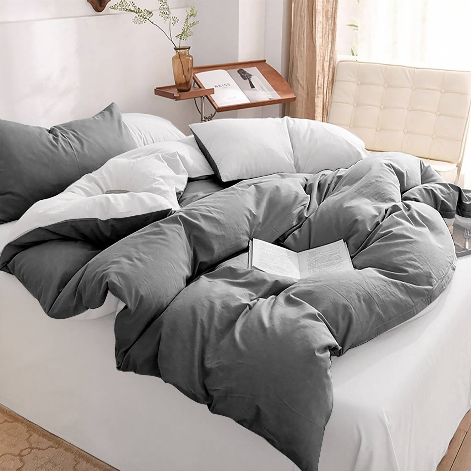 - Pościel 160x200 4 el. w kolorze szary/biały