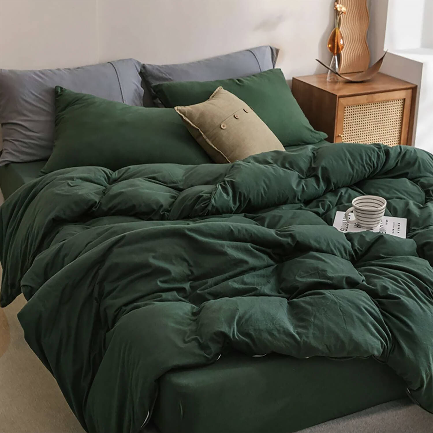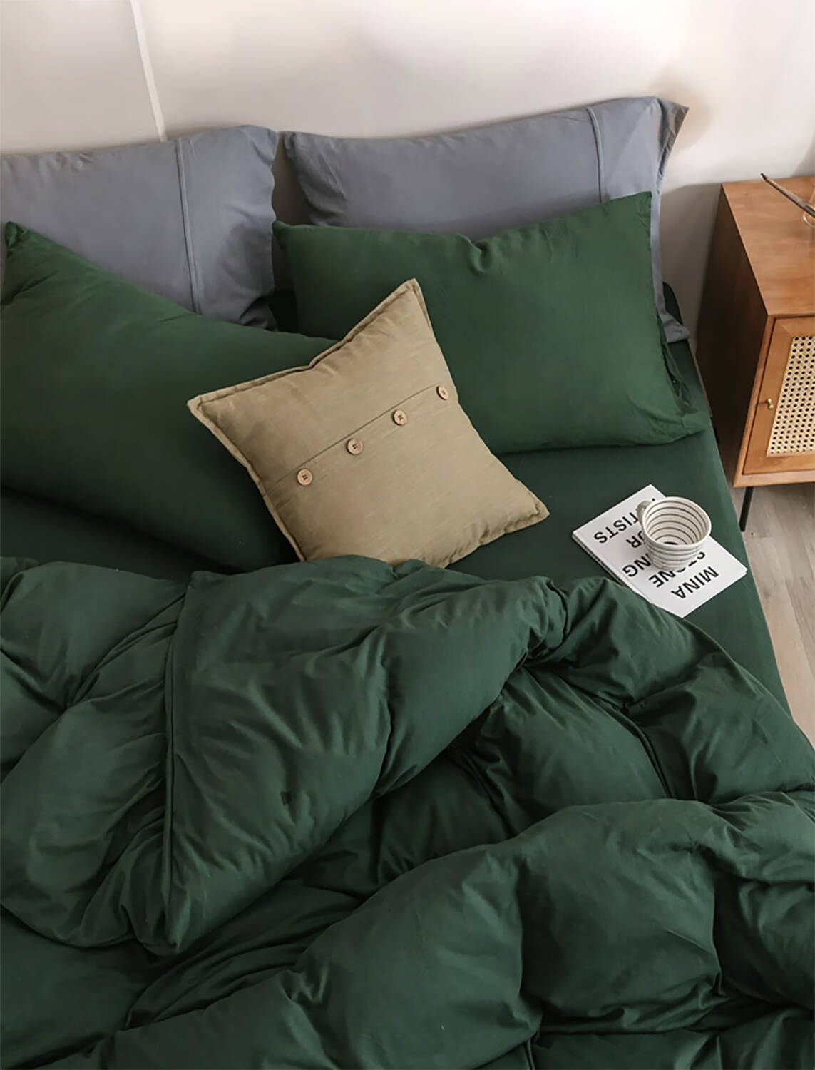 • Pościel 200x220 3 el. w kolorze butelkowej zieleni, dwie poszewki na poduszki, poszwa na kołdrę