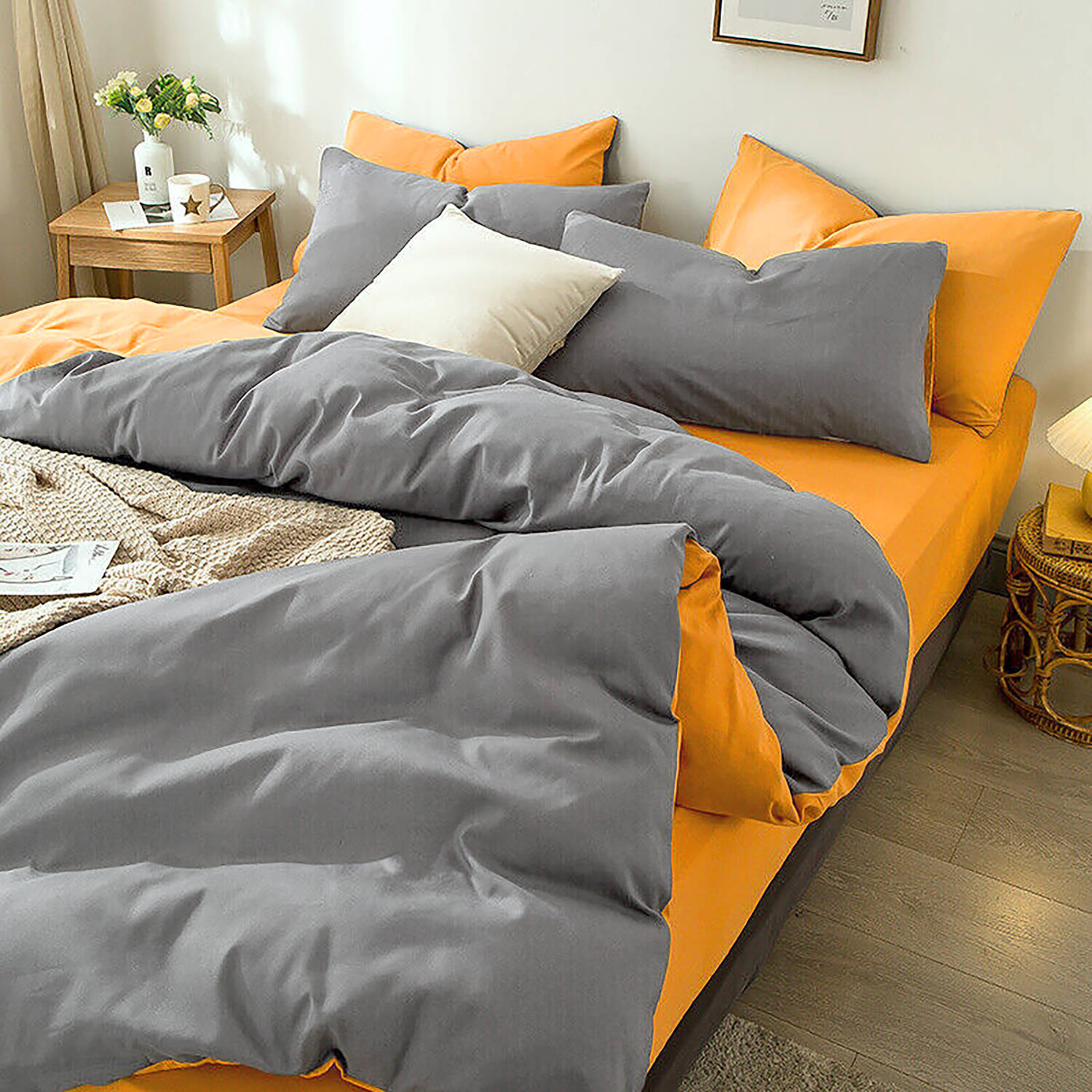 - Pościel 200x220 3 el. w kolorze szary/pomarańczowy, dwie poszewki na poduszki, poszwa na kołdrę