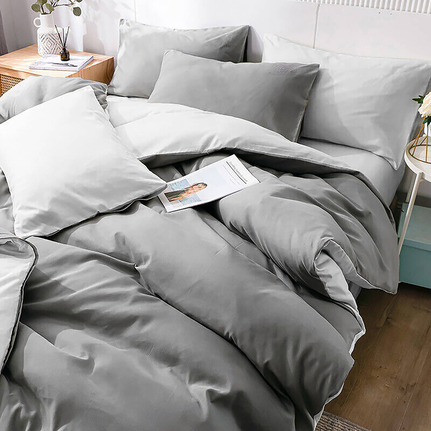 • Komplet szarej pościeli 200x220 skład: 100% bawełna syntetyczna dwustronna poszewka na kołdrę, 2 x poszewka na poduszkę 70x80, pościel gładka, dwukolorowa