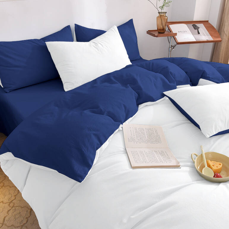 Pościel 200x220 4 el gładka biało-granatowa S-021