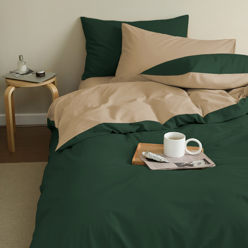 Pościel 200x220 4 el. gładka dwukolorowa butelkowa zielona - ciemna beżowa S-26