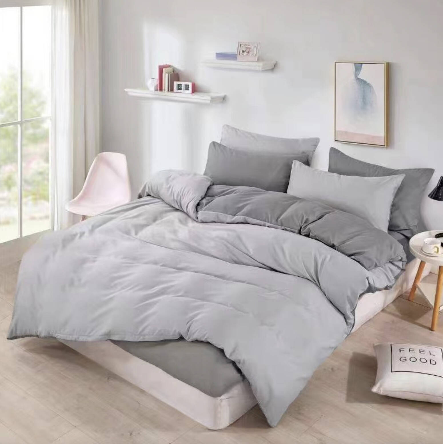 Opinie o Pościel 200x220 4 el. gładka dwukolorowa jasno-ciemno szara S-14/S-20/S-24