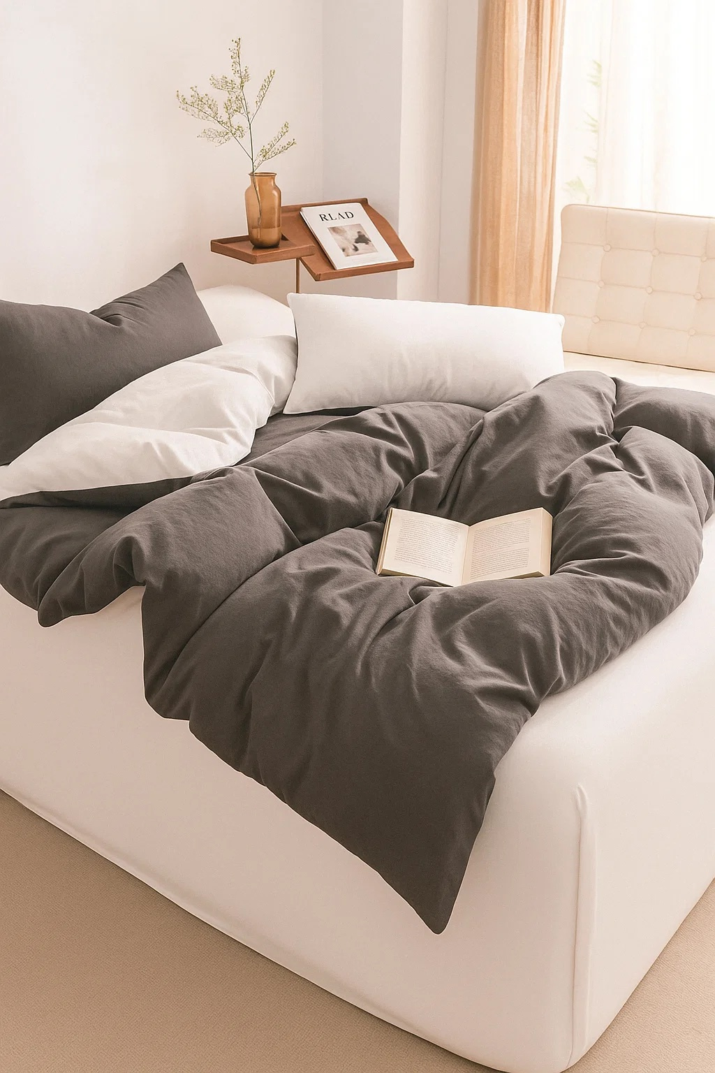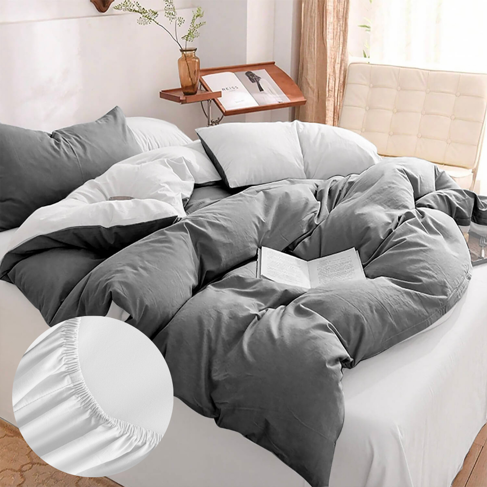 - Pościel bez wzoru dwustronna, ciemna szara, biała