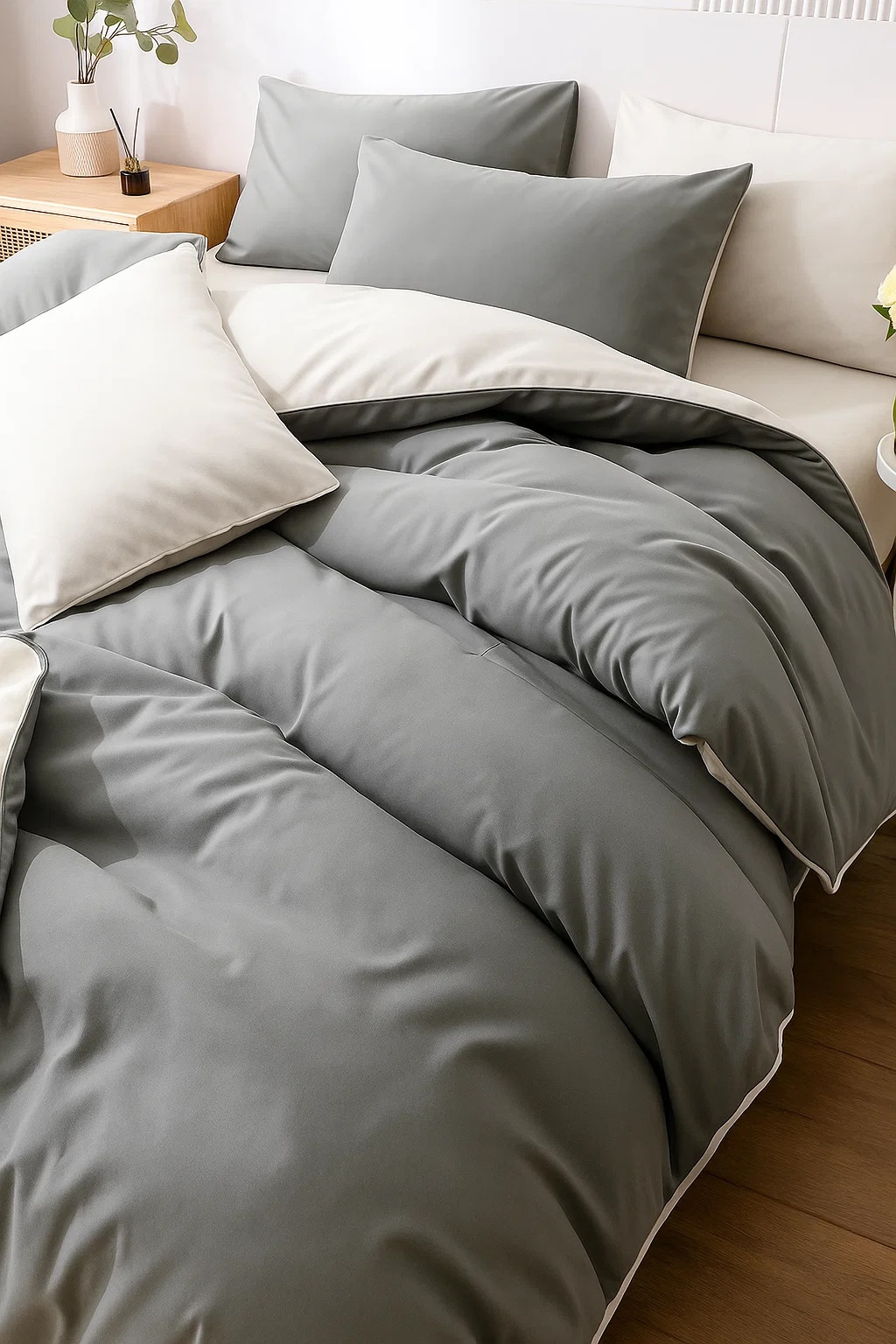 - Pościel bez wzoru dwustronna, ciemna szara, jasna szara