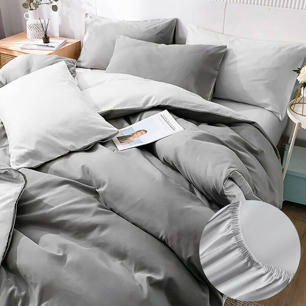 Pościel 200x220 4 el. z prześcieradłem z gumką gładka bez nadruku ciemno-jasna szara S-8