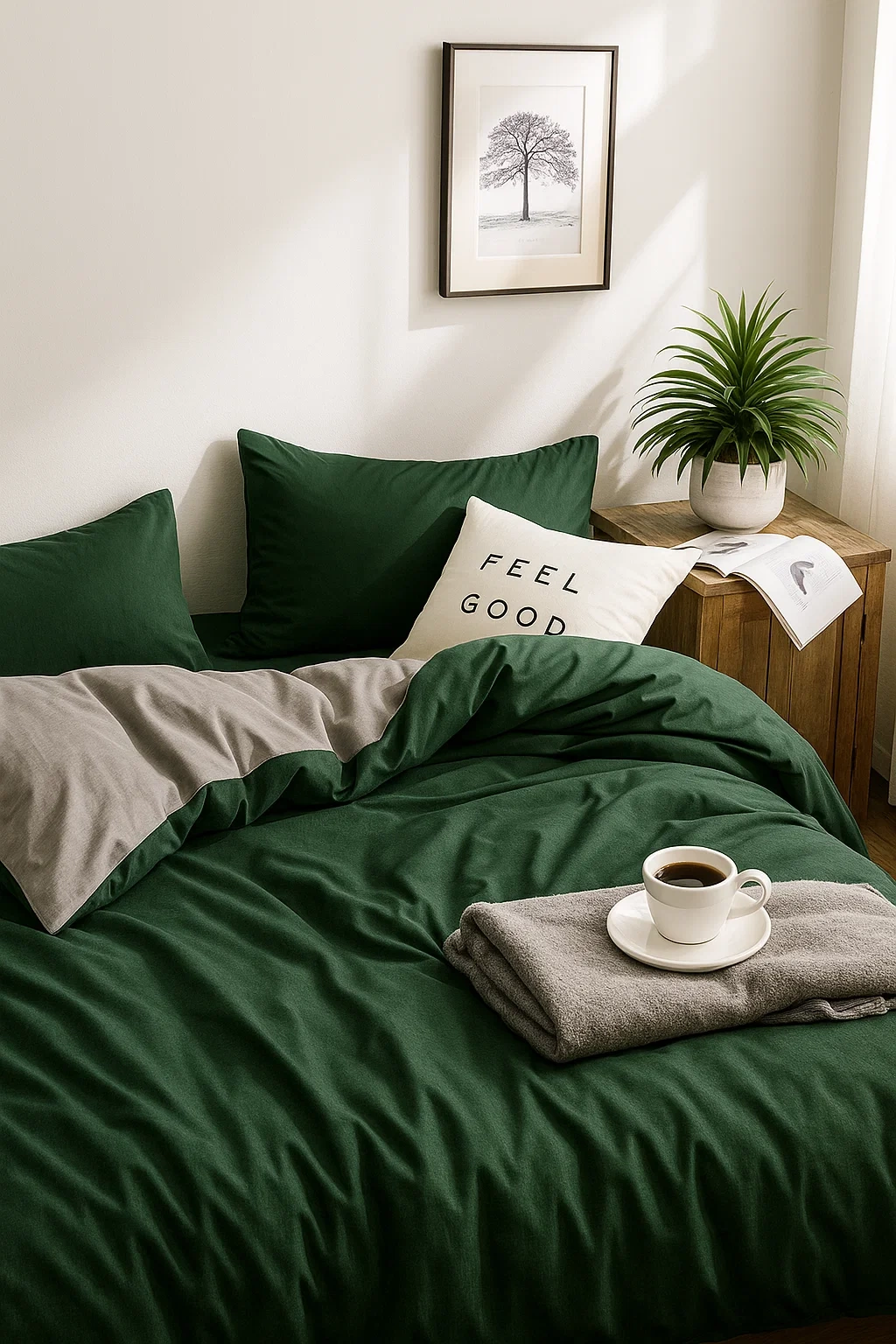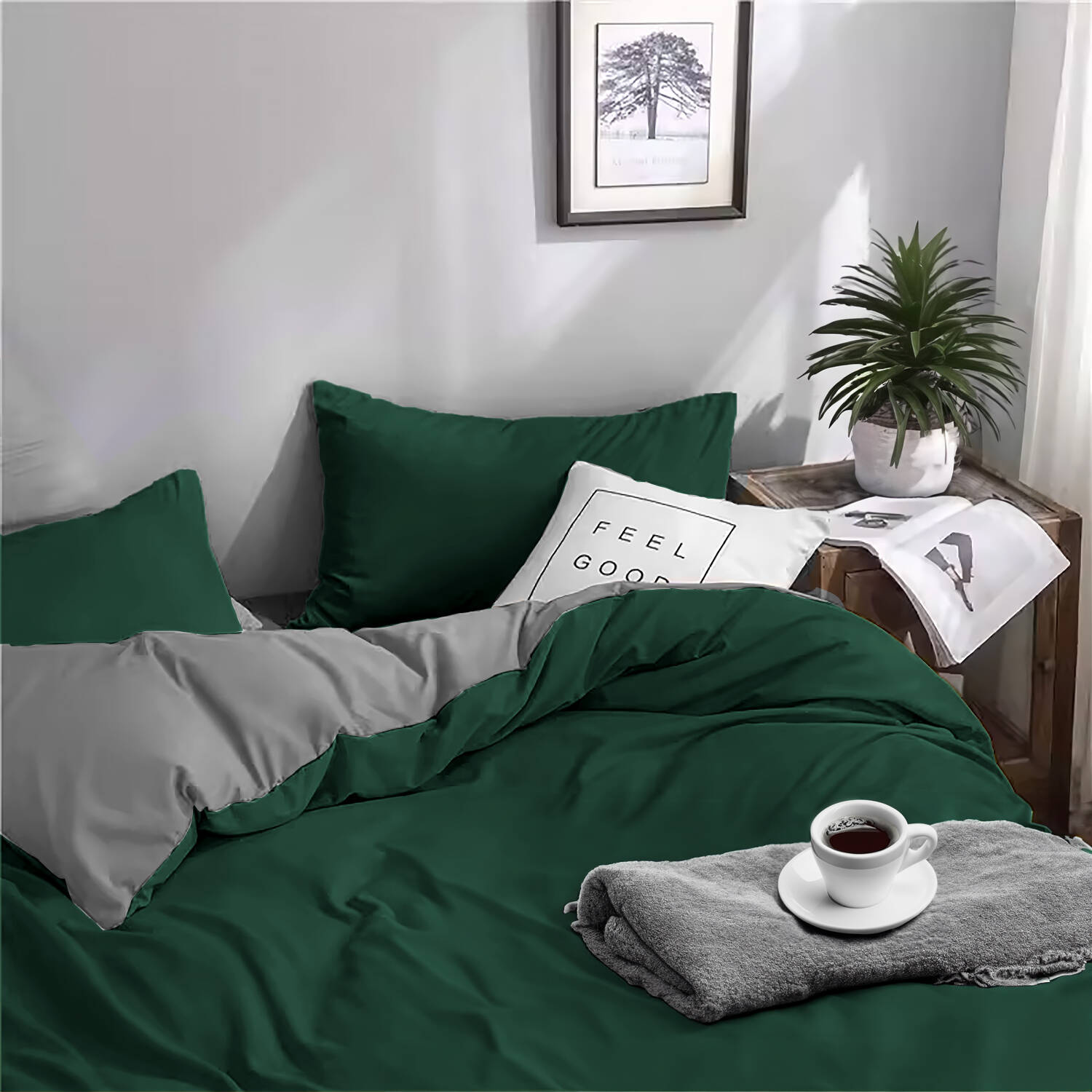 Pościel 200x220 4el gładka butelkowo zielono szara S-15