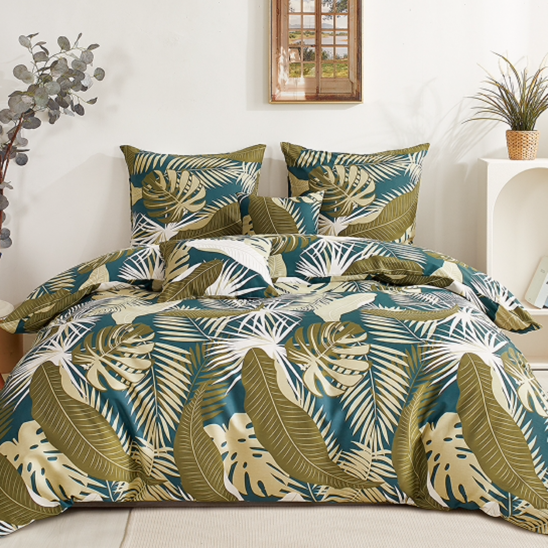 • Komplet naturalnej pościeli bawełnianej 140x200 skład: 100% bawełna dwustronna, poszewka na kołdrę i 1 x poszewka na poduszkę 70x80, ciemna zielona w liście
