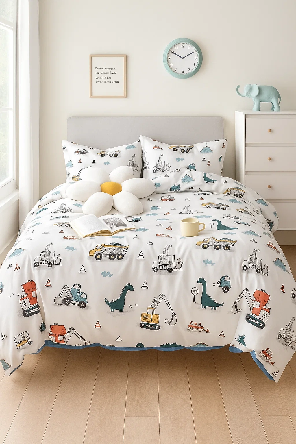 Pościel bawełniana 140x200 2 el. Dinuś Pracuś M1571