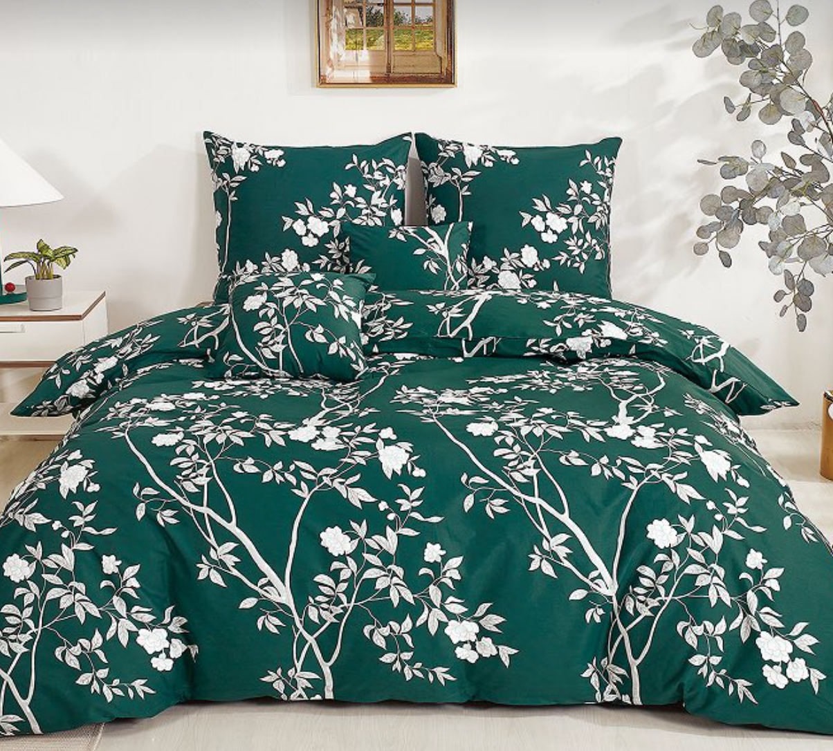 - Komplet naturalnej pościeli bawełnianej 140x200 skład: 100% bawełna dwustronna, poszewka na kołdrę i 1 x poszewka na poduszkę 70x80, ciemna butelkowa zielona w kwiaty