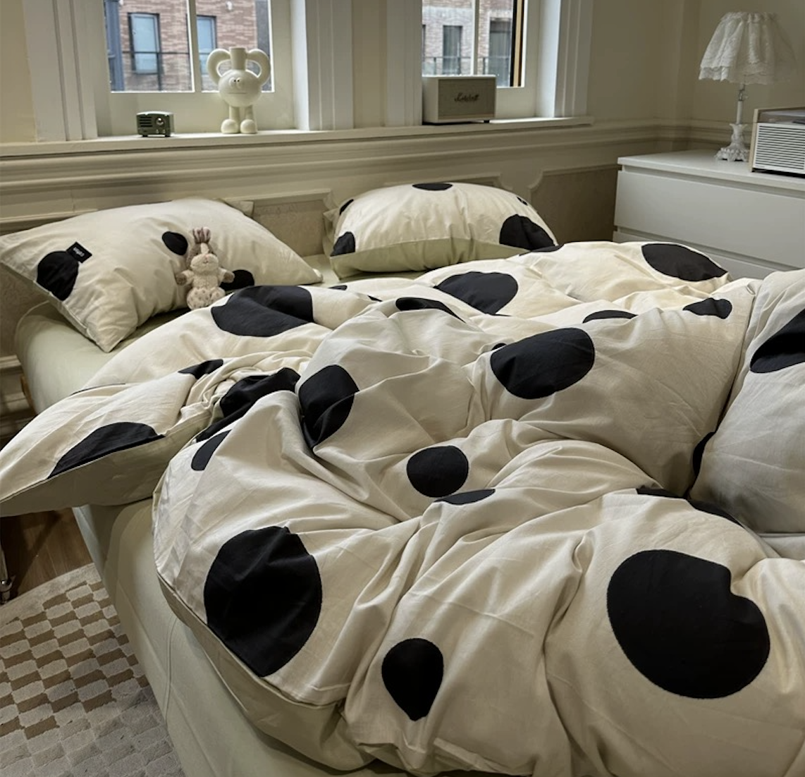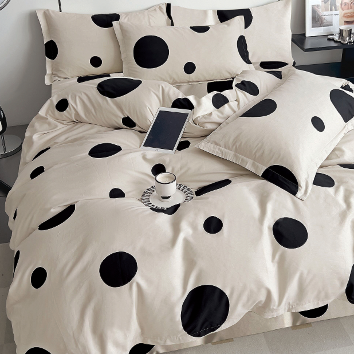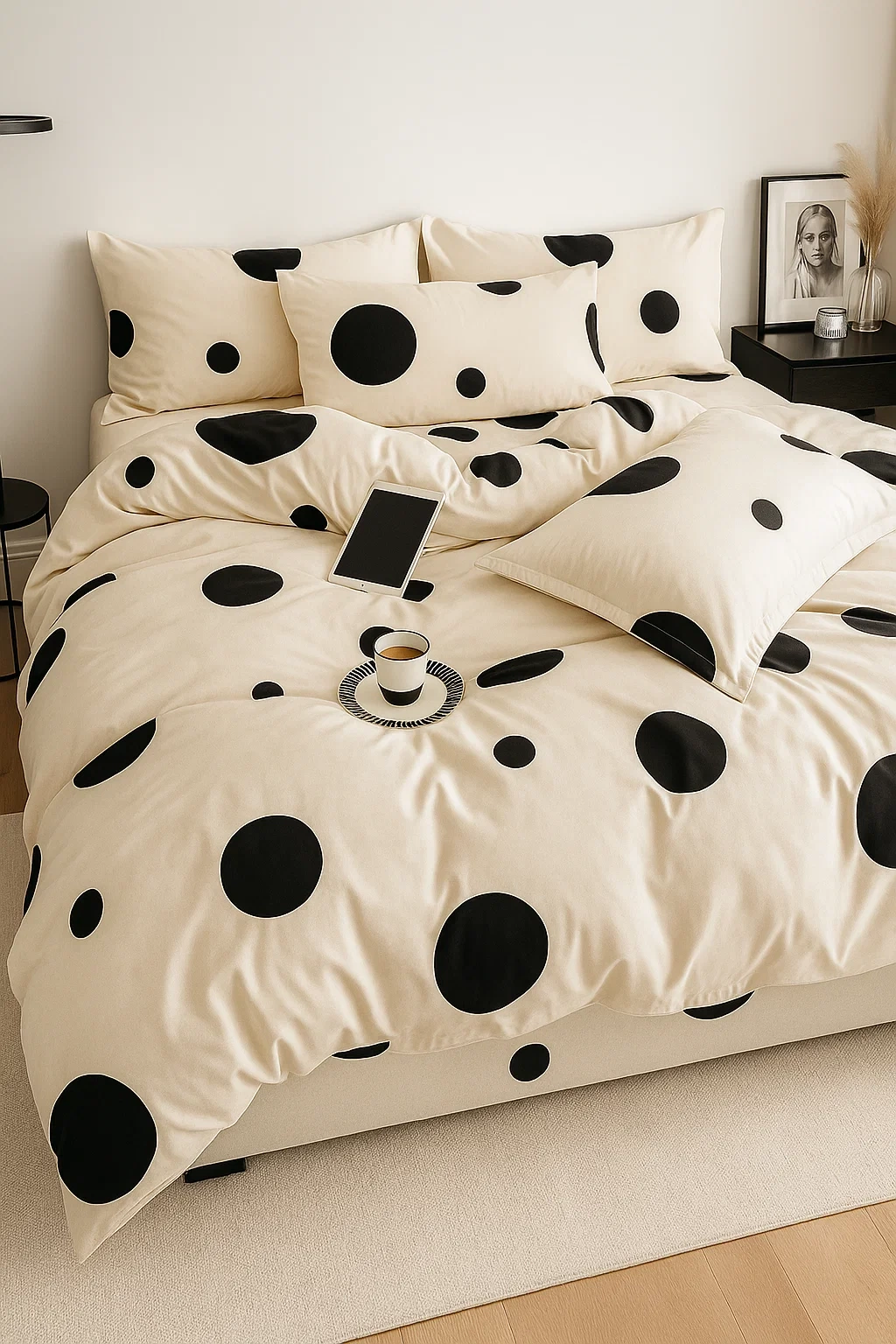 • Komplet naturalnej pościeli bawełnianej 140x200 skład: 100% bawełna dwustronna, poszewka na kołdrę i 1 x poszewka na poduszkę 70x80 pościel w kropki, ecru, jasna beżowa, czarna