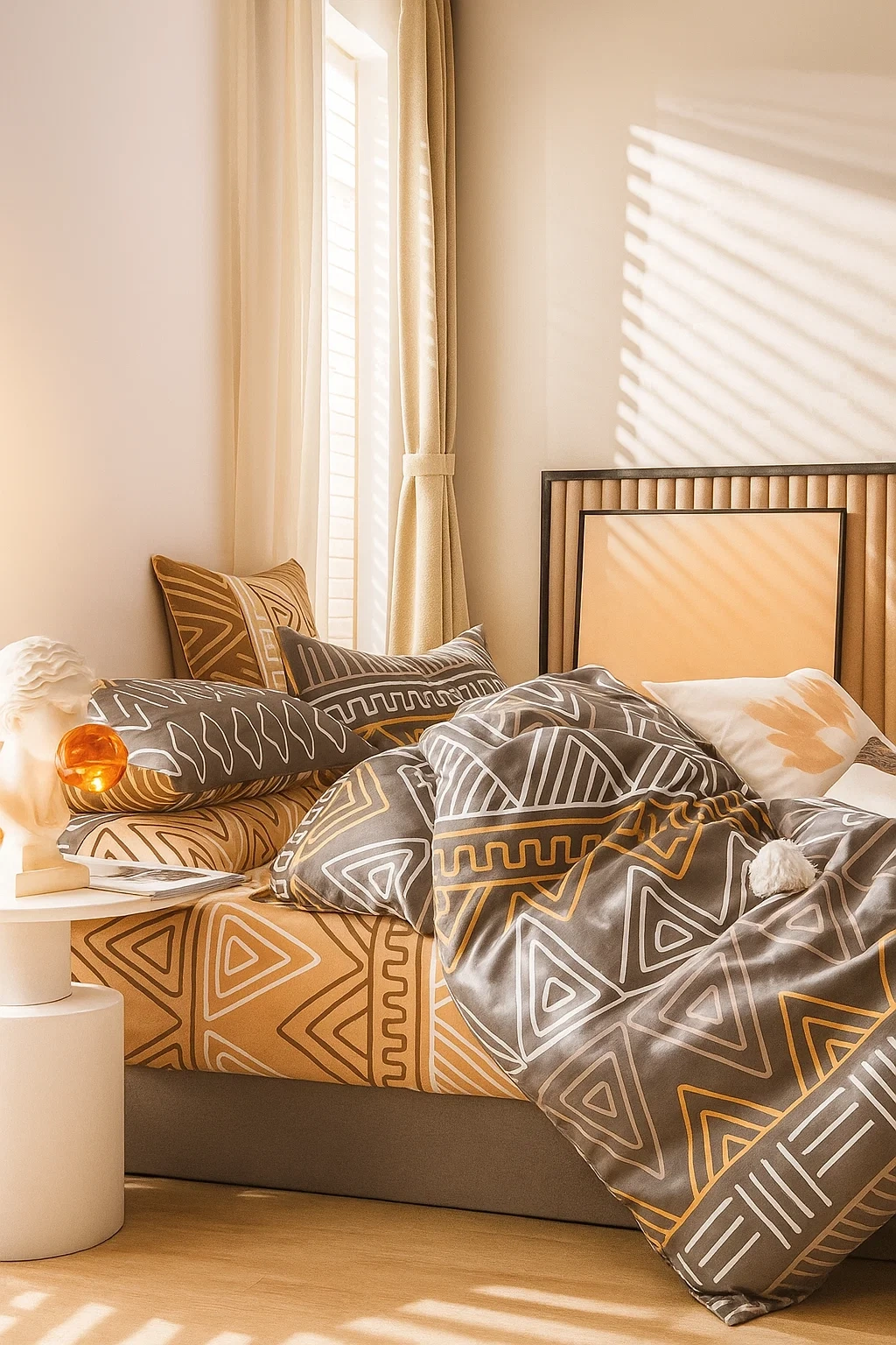 • Komplet pościeli bawełnianej 140x200 skład: 100% bawełna dwustronna poszewka na kołdrę i 1 x poszewka na poduszkę 70x80 pościel w geometryczne wzory