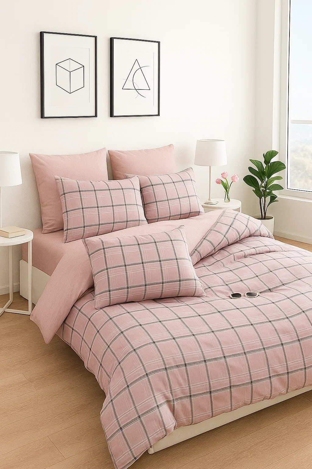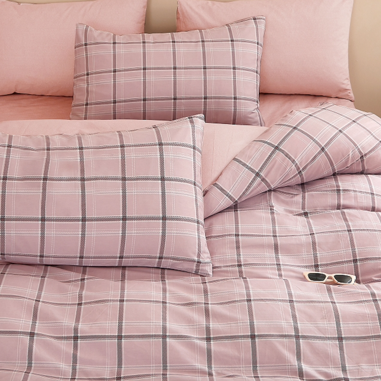 - Komplet pościeli bawełnianej 160x200 skład: 100% bawełna dwustronna poszewka na kołdrę i 2 x poszewka na poduszkę 70x80 naturalna, różowa, pościel w kratę