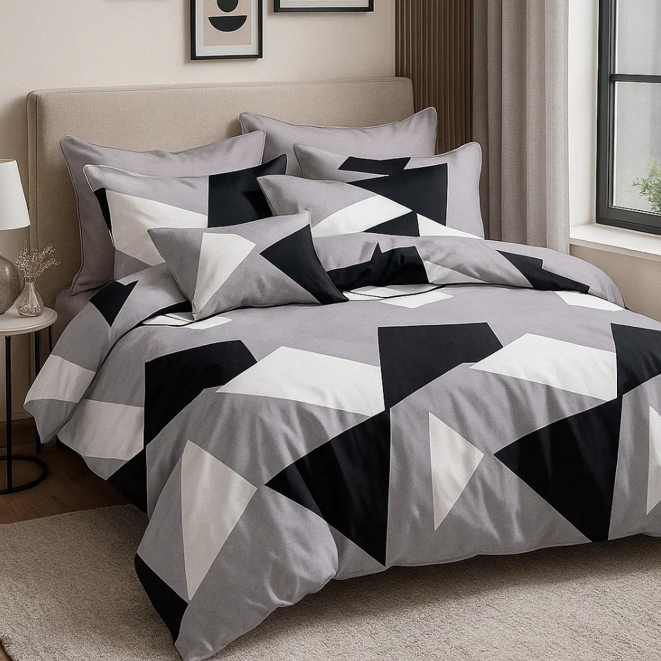 - Komplet naturalnej pościeli bawełnianej 160x200 skład: 100% bawełna dwustronna, poszewka na kołdrę i 2 x poszewka na poduszkę 70x80 pościel geometryczna, szara, czarna, biała