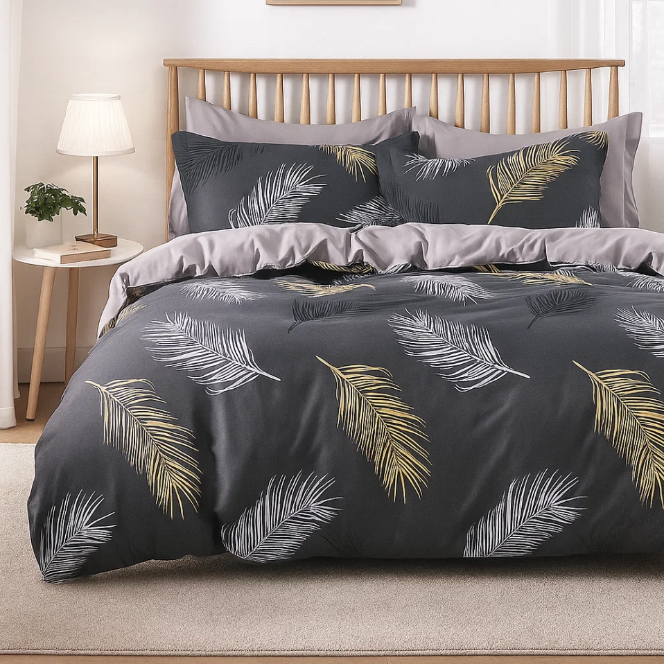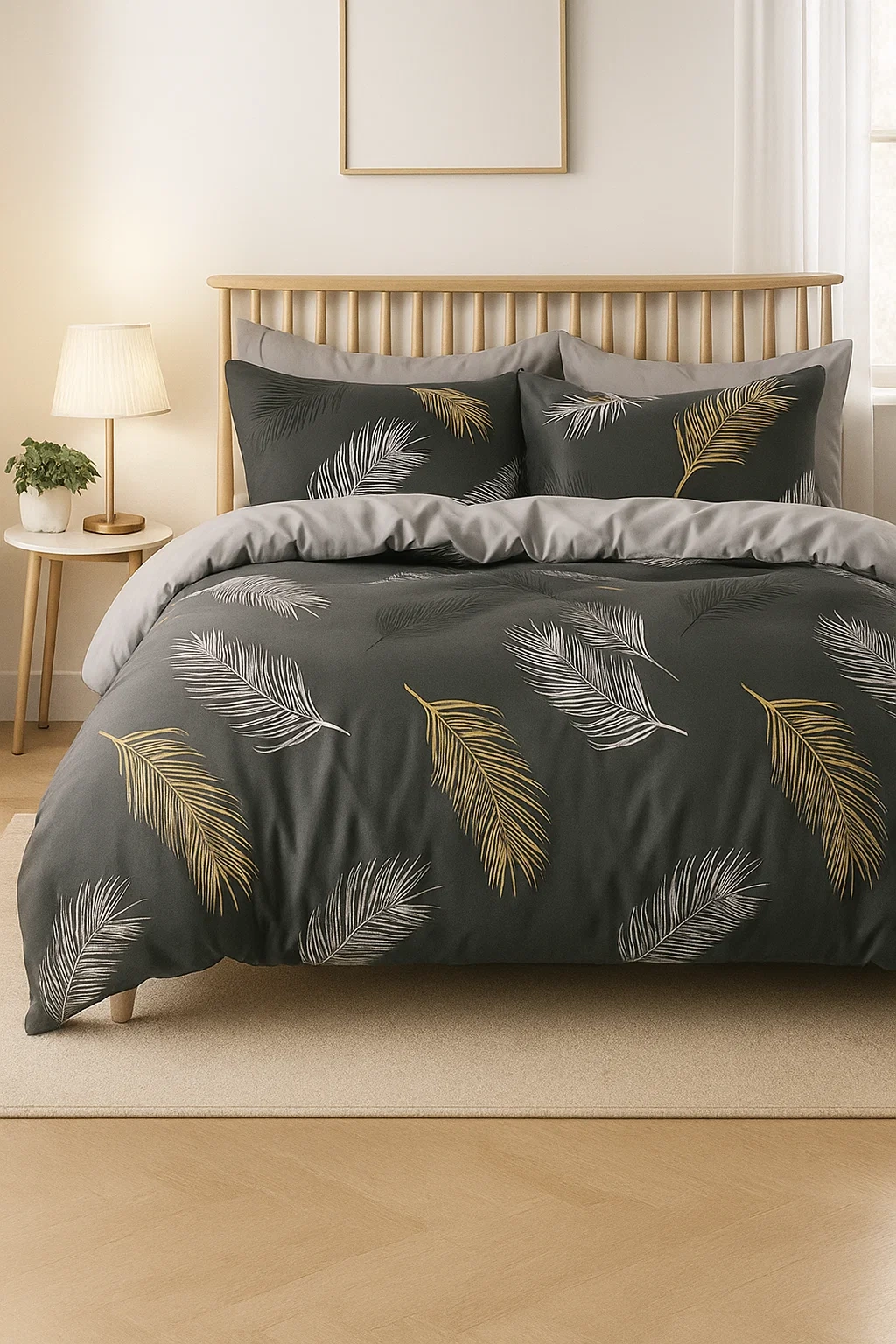 - Komplet pościeli bawełnianej 160x200 skład: 100% bawełna dwustronna poszewka na kołdrę i 2 x poszewka na poduszkę 70x80 ciemna pościel w liście palmy