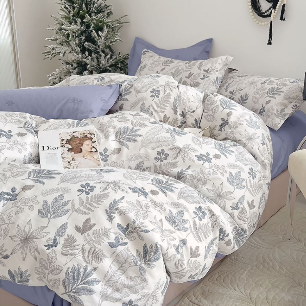 - Komplet pościeli białej z szarymi liśćmi i kwiatami to romantyczny dodatek do każdej sypialni. Na drugiej stronie ma delikatny fioletowy odcień. Dzięki tej pościeli, sen staje się jeszcze bardziej przyjemny, a sypialnia nabiera wyjątkowego charakteru.