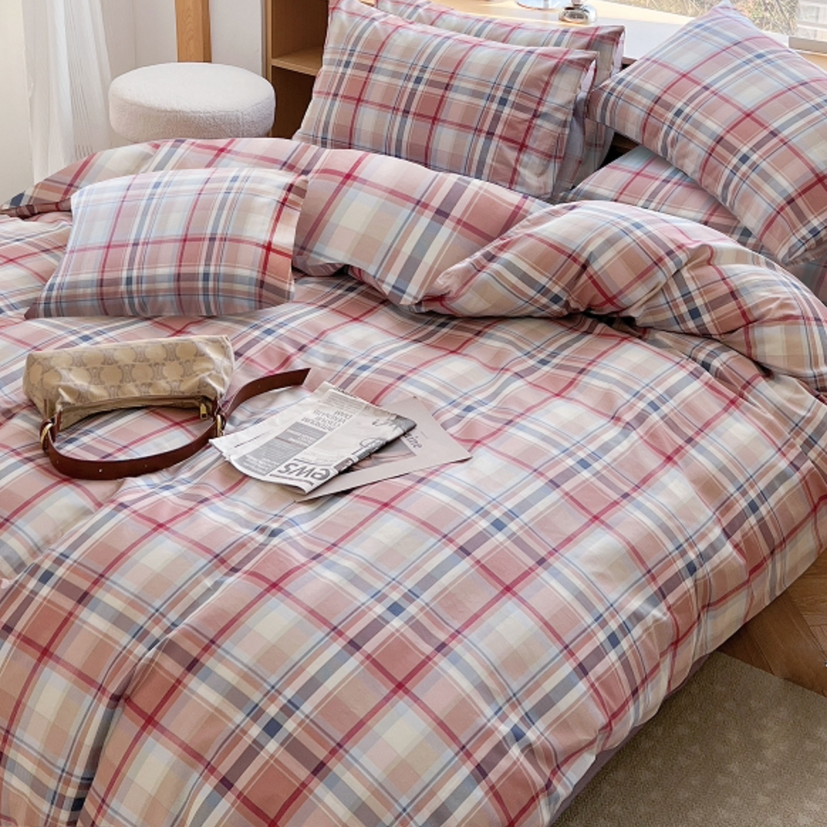 • Komplet naturalnej pościeli bawełnianej 160x200 skład: 100% bawełna dwustronna, poszewka na kołdrę i 2 x poszewka na poduszkę 70x80 pościel w kratę, różowa, fioletowa