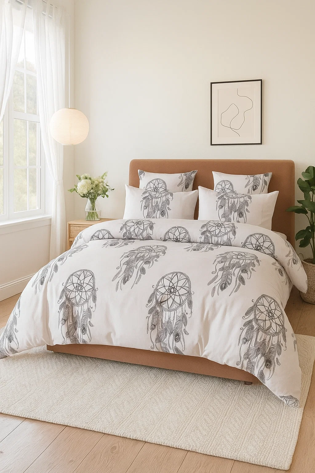 - Komplet pościeli beżowej w łapacze snów to stylowy dodatek do każdej sypialni. Dzięki tej pościeli, sen staje się jeszcze bardziej przyjemny, a sypialnia nabiera wyjątkowego charakteru.