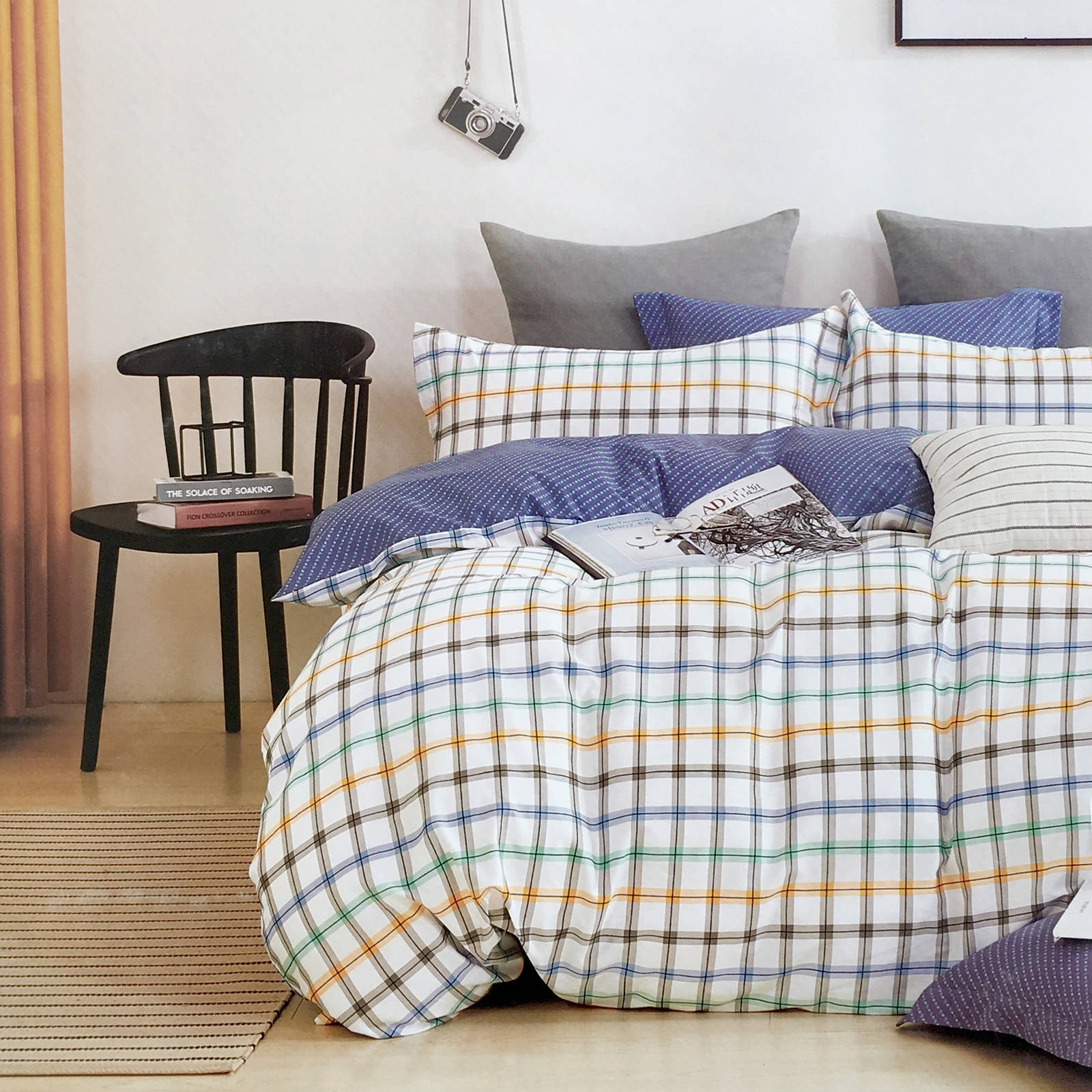 - Komplet pościeli bawełnianej 160x200 skład: 100% bawełna dwustronna poszewka na kołdrę i 2 x poszewka na poduszkę 70x80 biała pościel w kolorową kratkę, kratę, kraciasta
