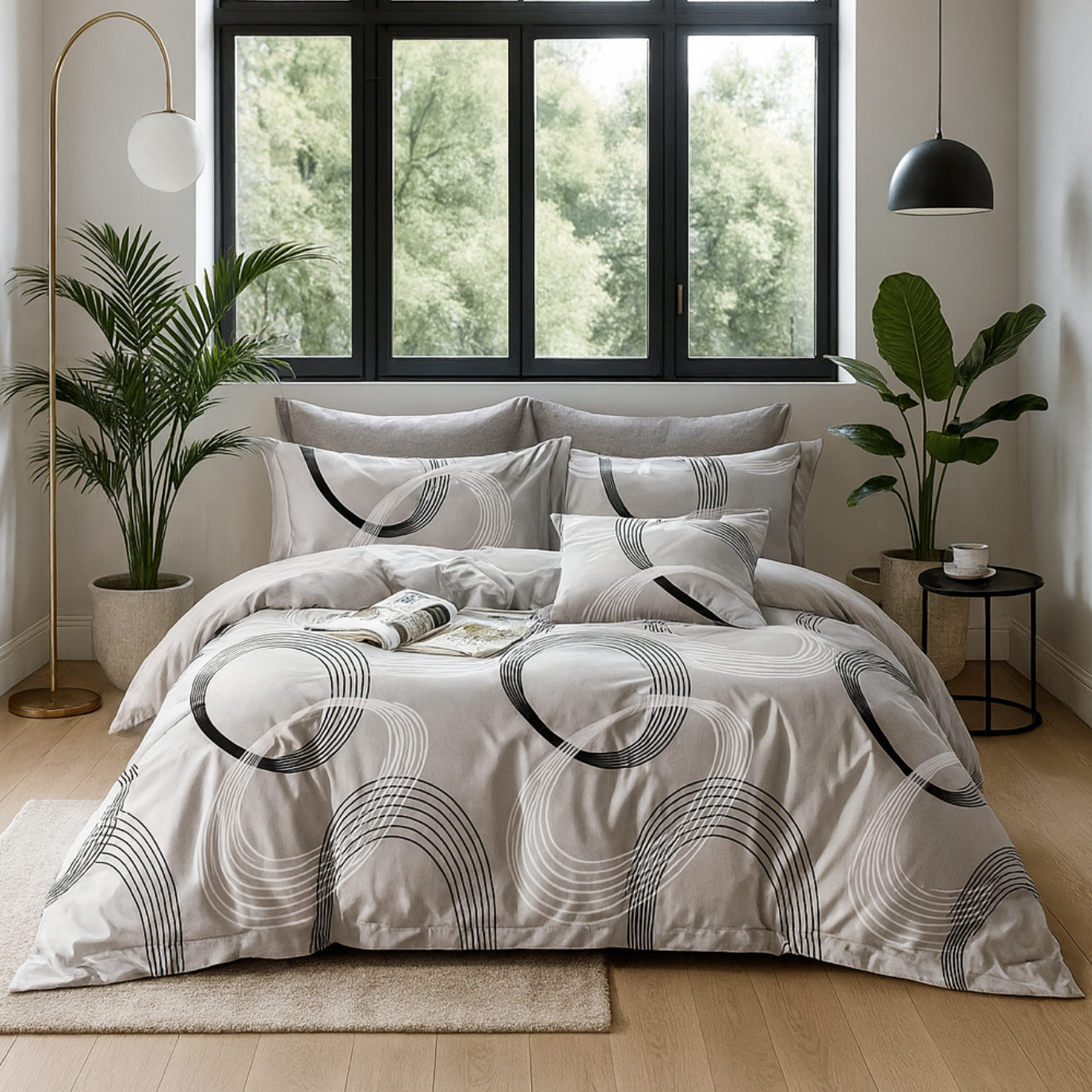 • Komplet pościeli szarej w geometryczny wzór to stylowy dodatek do każdej sypialni. Dzięki tej pościeli, sen staje się jeszcze bardziej przyjemny, a sypialnia nabiera wyjątkowego charakteru.