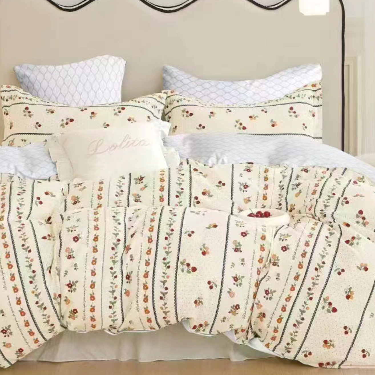 - Komplet pościeli ecru z delikatnym rustykalnym wzorem w kwiatki i truskawki to romantyczny dodatek do każdej sypialni. Dzięki tej pościeli, sen staje się jeszcze bardziej przyjemny, a sypialnia nabiera wyjątkowego charakteru.