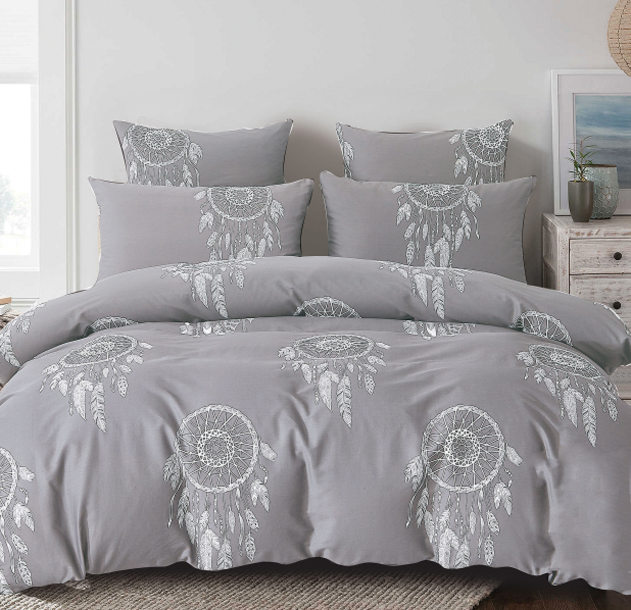 • Komplet naturalnej pościeli bawełnianej 160x200 skład: 100% bawełna dwustronna, poszewka na kołdrę i 2 x poszewka na poduszkę 70x80 szara w łapacze snów