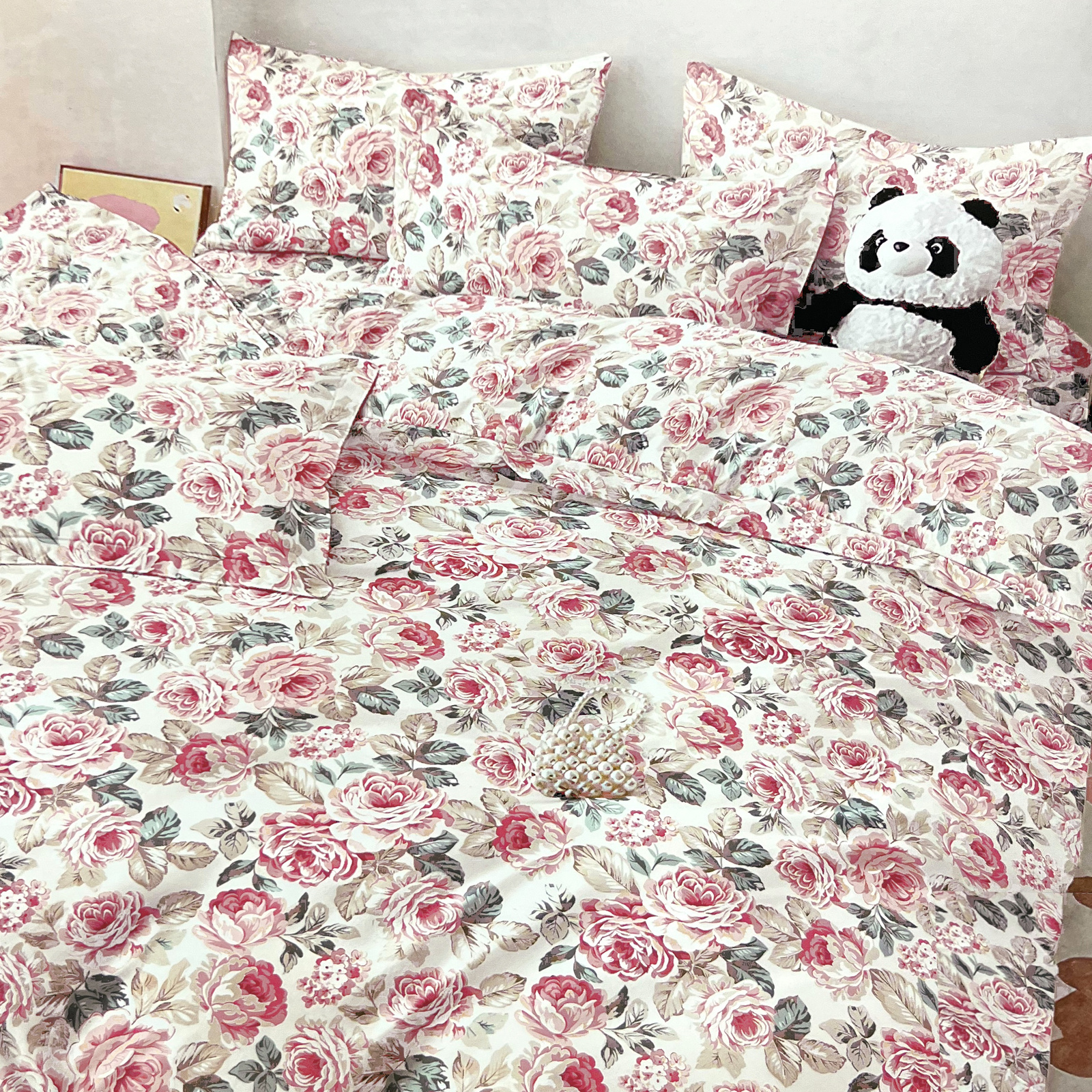 - Komplet pościeli bawełnianej w kwiaty 160x200 skład: 100% bawełna dwustronna, poszewka na kołdrę i 2 x poszewka na poduszkę 70x80, różowa
