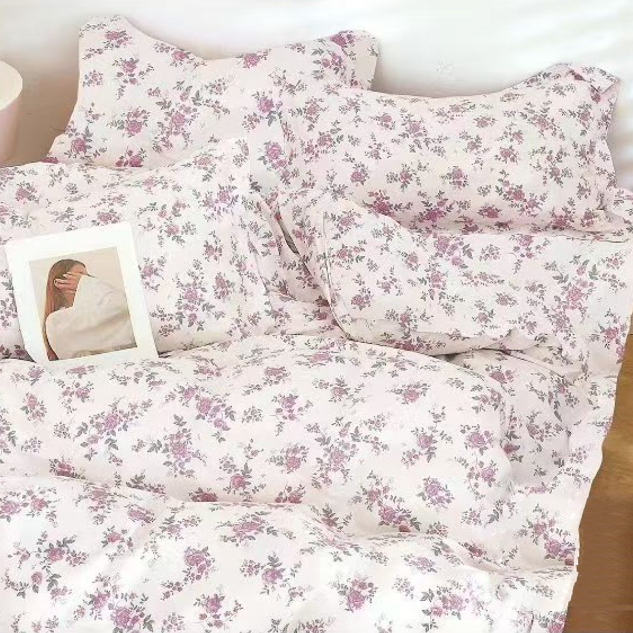 - Komplet pościeli bawełnianej w kwiaty 160x200 skład: 100% bawełna dwustronna, poszewka na kołdrę i 2 x poszewka na poduszkę 70x80, kremowa, fioletowa